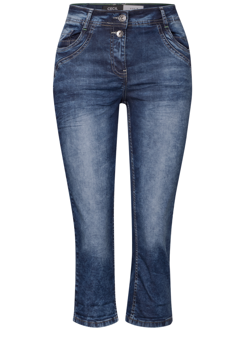 Diese 3/4-Jeans von CECIL für Damen im Casual Fit ist der perfekte Allrounder für entspannte Looks. Mid Waist und Slim Legs sorgen für eine moderne Passform. Die blaue Waschung und das 5-Pocket-Design verleihen der Jeans eine klassische Note. Jeanshose im Casual Fit Mid Waist und Slim Legs 5-Pocket Blaue Waschung Baumwollmix mit Stretchanteil Material: 78% Baumwolle, 20% Polyester, 2% Elasthan
