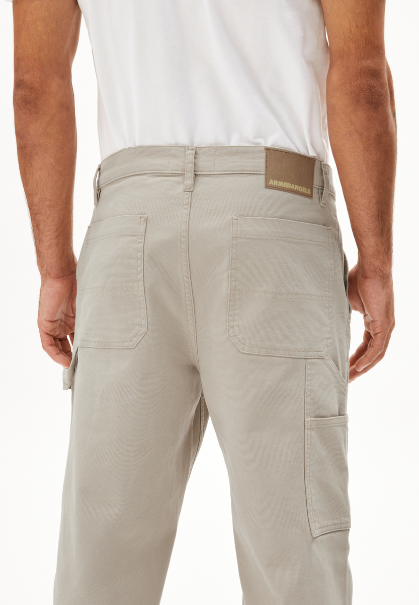 These AAGAPIO fabric trousers offer a comfortable, loose fit with a mid-rise waist and straight cut. Special pocket details and the blend of organic cotton and elastane ensure comfort and versatile styling options.