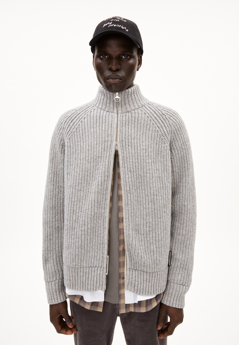 The ALJOSCHAA knitted sweater combines chunky knitwear with a comfortable, casual fit. Made from organic wool and recycled wool, it keeps you nice and warm and is kind to the skin. The troyer style with a zipper and mock neckline gives this sweater an uncomplicated and functional touch.