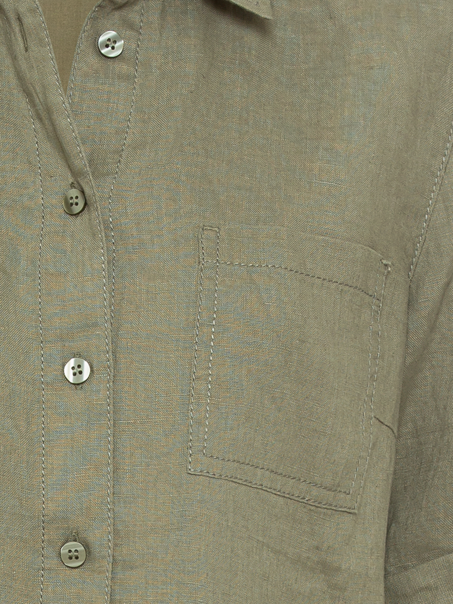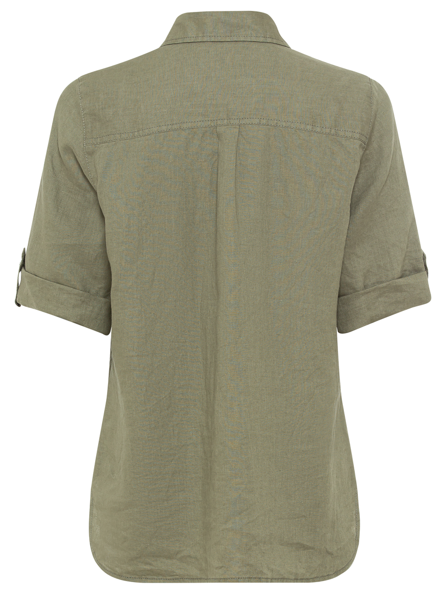 Diese trendige Bluse von Olsen sollte in Ihrer Frühjahrsgarderobe keinesfalls fehlen! Der Hemdkragen, die durchgehende Knopfleiste und die beiden aufgesetzten Brusttaschen verleihen der Bluse einen klassischen Stil. Die hochgekrempelten 1/3-Ärmel bieten eine angenehme Länge und gefertigt aus einer reinen Leinenqualität, liegt die Bluse luftig leicht auf der Haut auf.