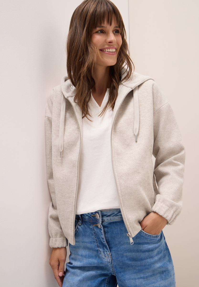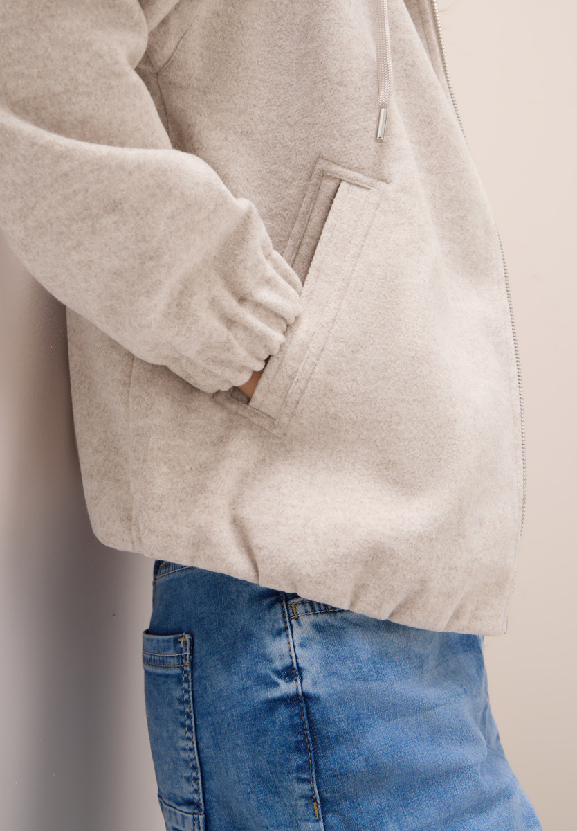 Der Blouson von CECIL für Damen zeigt sich in einer angenehmen Qualität in Wolloptik. Die Kapuze mit Tunnelzug und elastische Bündchen bieten gemütlichen Komfort, während der elastische Saum für einen sportlichen Sitz sorgt. Seitliche Taschen ergänzen den funktionalen Look. Damenjacke Kapuze mit Tunnelzug Langarm mit elastischen Bündchen Seitliche Taschen Elastischer Saum Material: Obermaterial: 92% Polyester, 8% Viskose; Futter: 100% Polyester