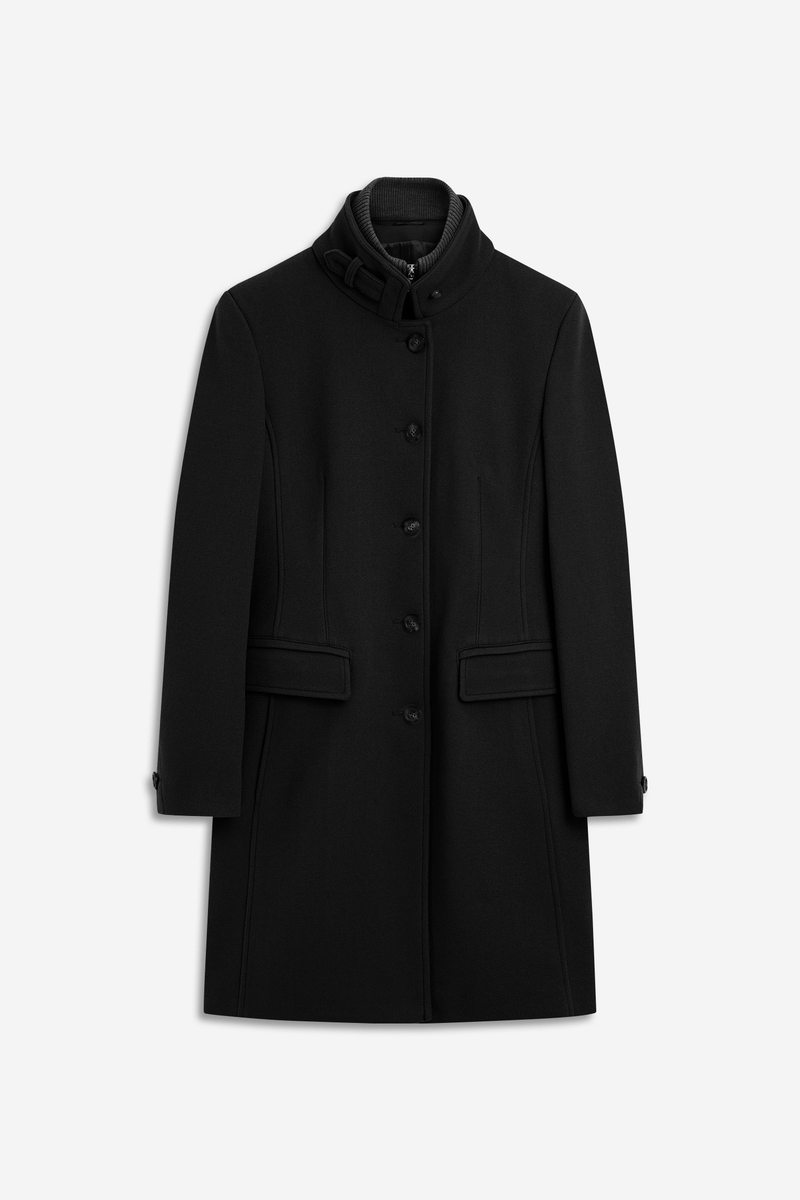 Ein CINQUE Mantel der absolut zeitlos ist. Das ungefütterte Modell hat einen klassischen Stehkragen, eine feminine Silhouette und kommt in kuscheliger Woll-Optik.