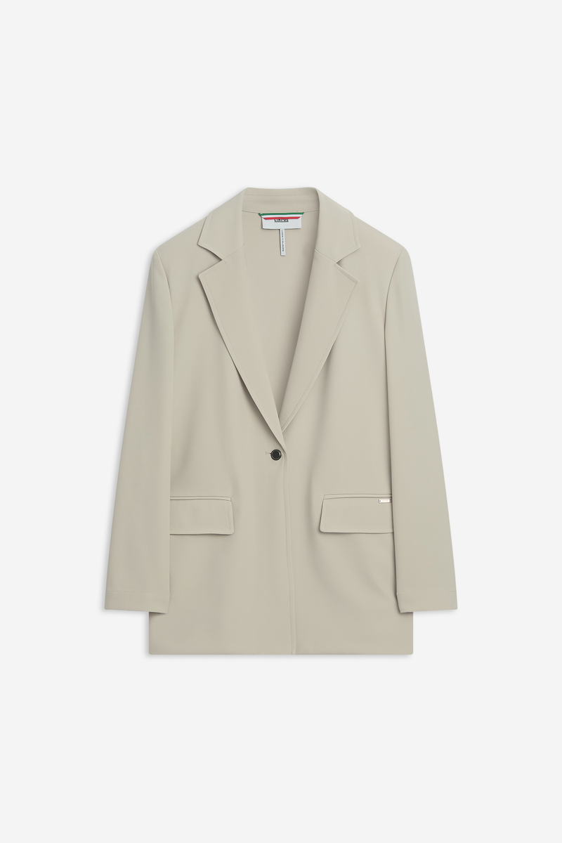 Italienische Leichtigkeit trifft auf feminine Eleganz: Der Blazer besticht durch seinen fließenden Schnitt und die entspannte Passform. Kombinierbare Styles wie Mantel, Hose oder Bluse vervollständigen den Look.