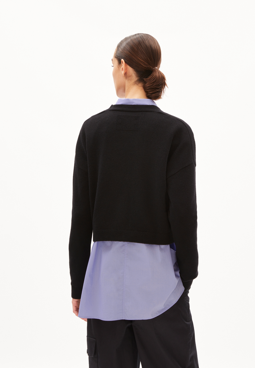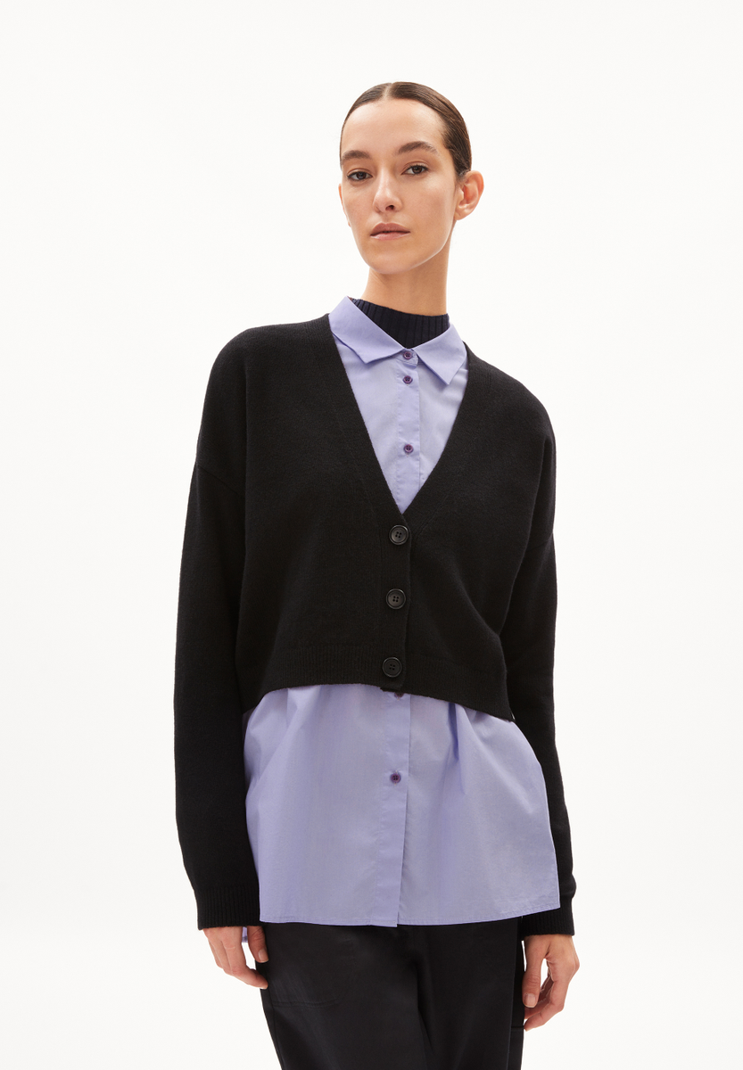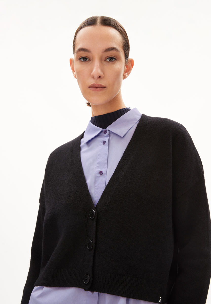 Imagine walking through the gentle autumn winds, wrapped in the coziness of the DAMIRAA REGLANA knitted cardigan! Experience the perfect fusion of style and comfort in a medium-weight knit. The generous V-neckline, which is fastened with three large buttons, adds a touch of sophistication, while the oversized fit exudes casual vibes. Made from recycled and organic wool, this cardigan is not only warm, but also makes a statement. Get this must-have for the colder days now!