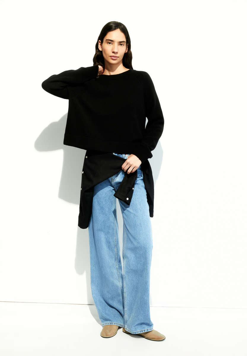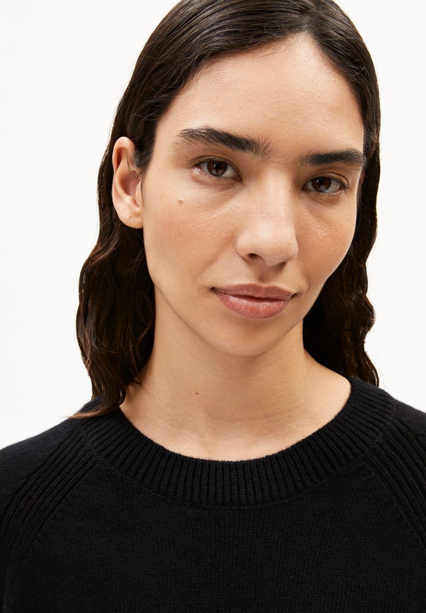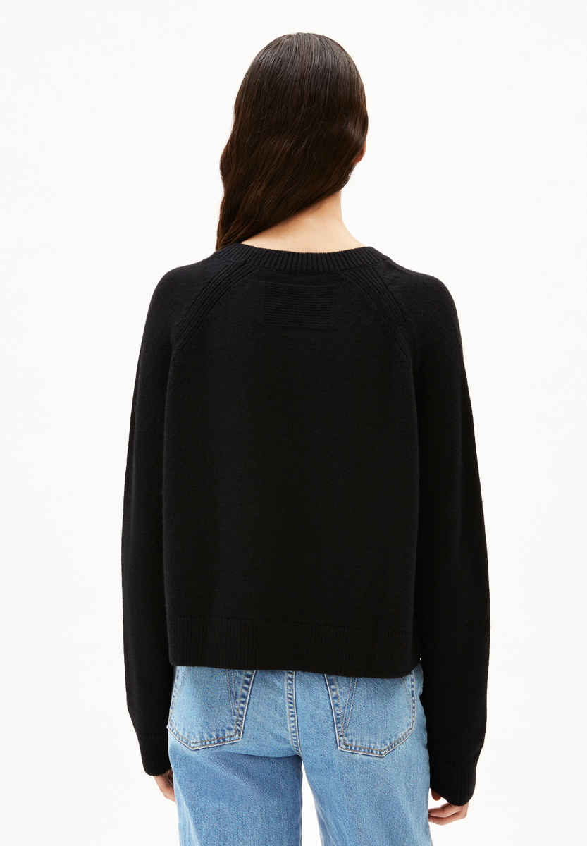 The DILIRIAA REGLANA sweater stands out with a relaxed, cropped fit and mid-weight knit. Made from a blend of organic and recycled wool, it provides warmth and breathability. This solid-colored, timeless piece is ideal for a relaxed feel.