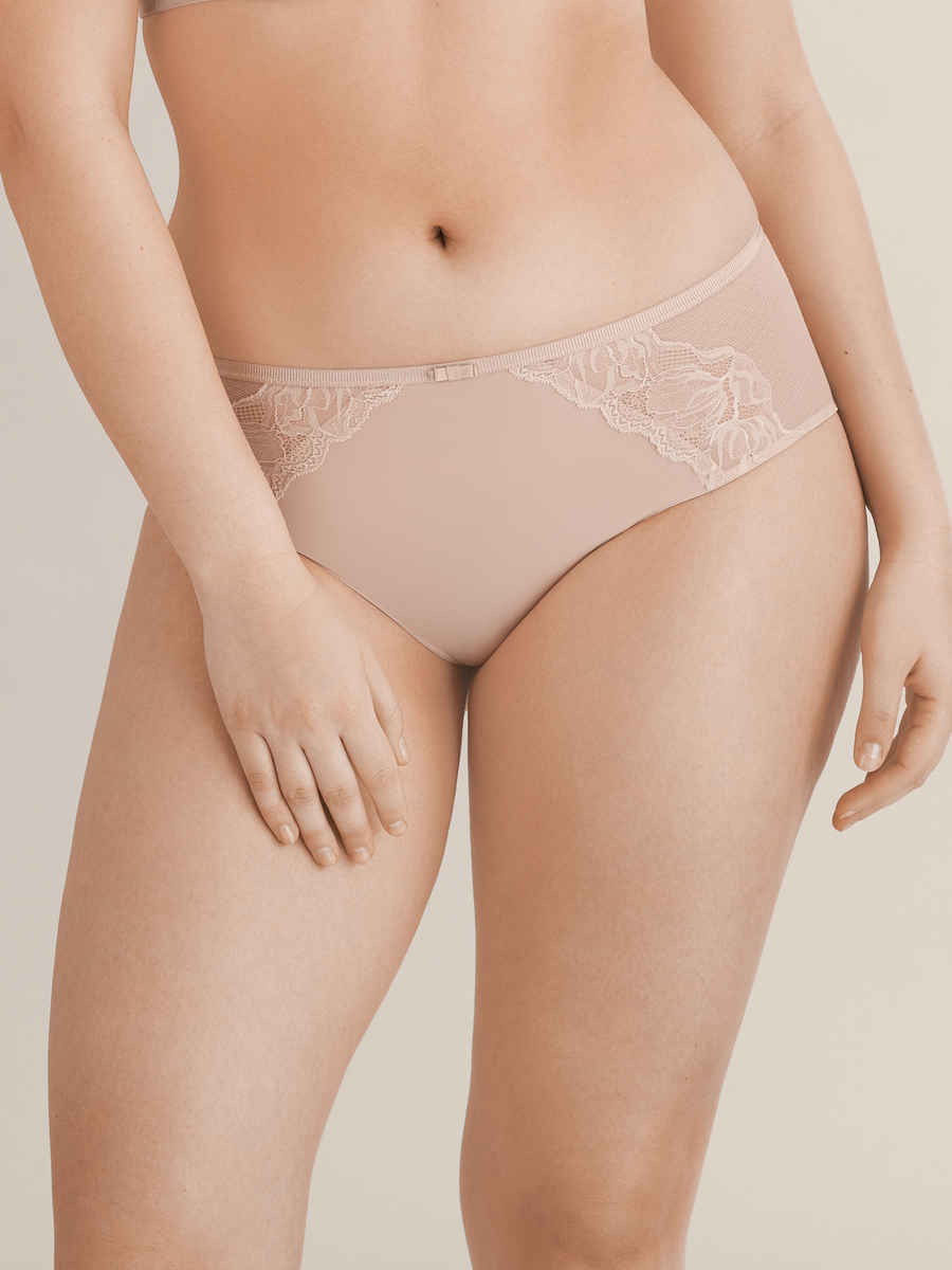 Dieser romantische Taillenslip aus der Reihe Essential trägt sich dank anschmiegsamer Microfaser-Qualität angenehm leicht. Er ist mit Einsätzen aus zarter Blütenspitze und frechem Pünktchen-Tüll veredelt, elastische Bänder und eine kleine Schleife aus Ripsband runden den verspielten Look ab. Dank Clean Cut im Rückteil bleibt er unsichtbar unter der Kleidung.