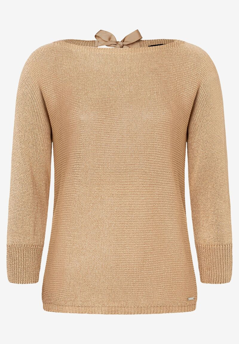 Der feminine Fledermaus-Pullover von MORE & MORE mit dekorativem Schleifenband im Rückteil sieht zum fließenden Chiffonrock genauso gut aus wie zur verwaschenen Jeans oder zur sportiven Chino.