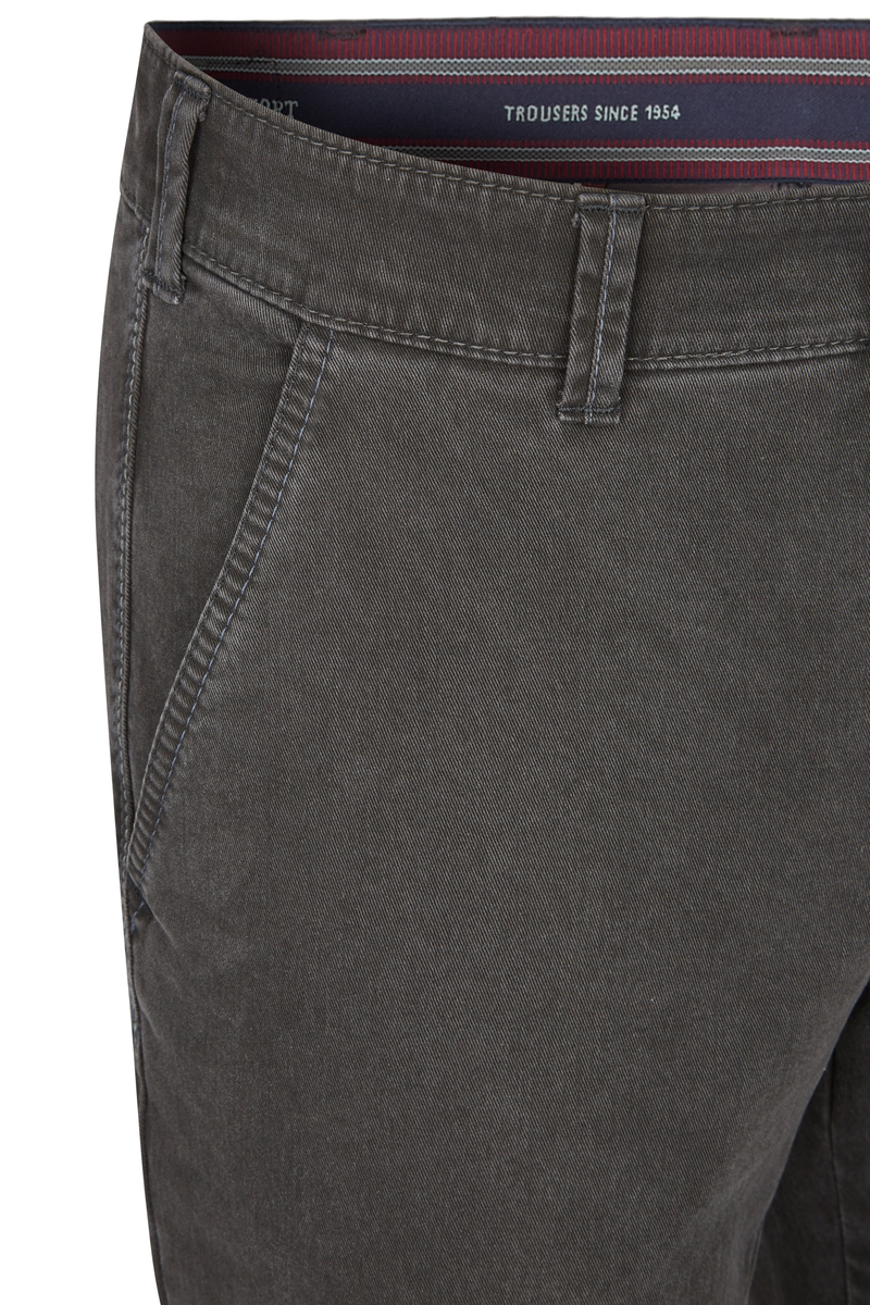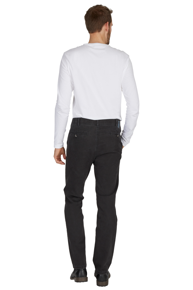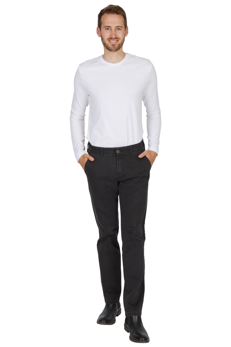 Bequeme Flat Front-Hose mit elastischem Komfortbund und Hemdstopper. Gefertigt aus einem hochelastischen Baumwoll-Gabardine mit High Stretch. Dazu der softe Griff und der edle Look. Gewicht: 450 g/lfm Das Modell bietet eine normale Leibhöhe und wegen der schmaleren Fußweite einen schlankeren Beinverlauf.
