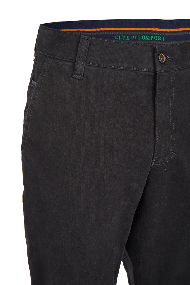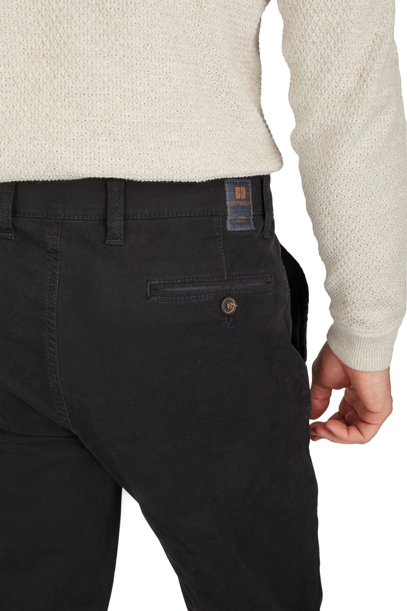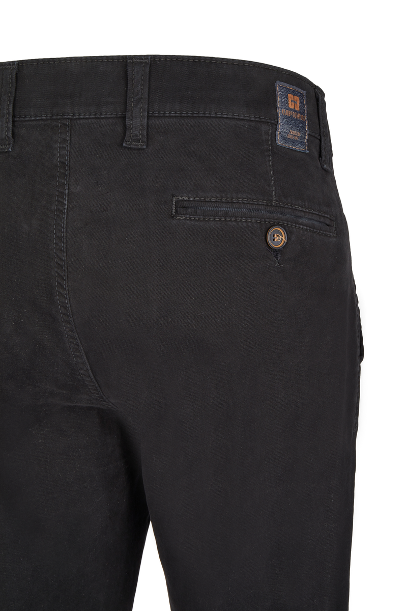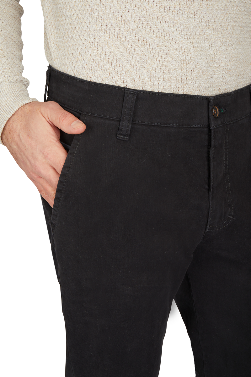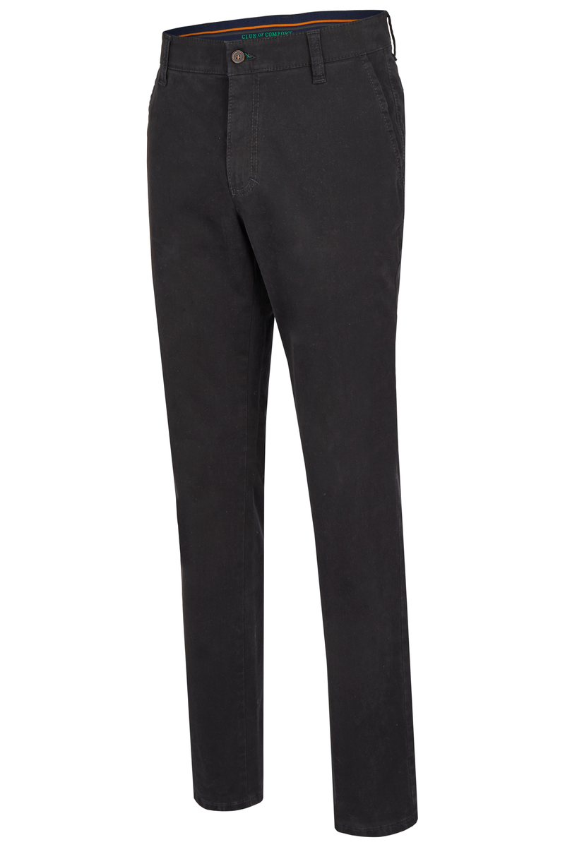 Bequeme Flat Front-Hose mit elastischem Komfortbund und Hemdstopper. Die Münztasche in der rechten Seitentasche bringt einen Hauch Sportivität in den Look. Gefertigt aus einer hochelastischen High Stretch-Baumwolle mit wunderschönem Warenbild und maskulinem Griff. Gewicht: 400 g/lfm Das Modell bietet eine normale Leibhöhe und wegen der schmaleren Fußweite einen schlankeren Beinverlauf