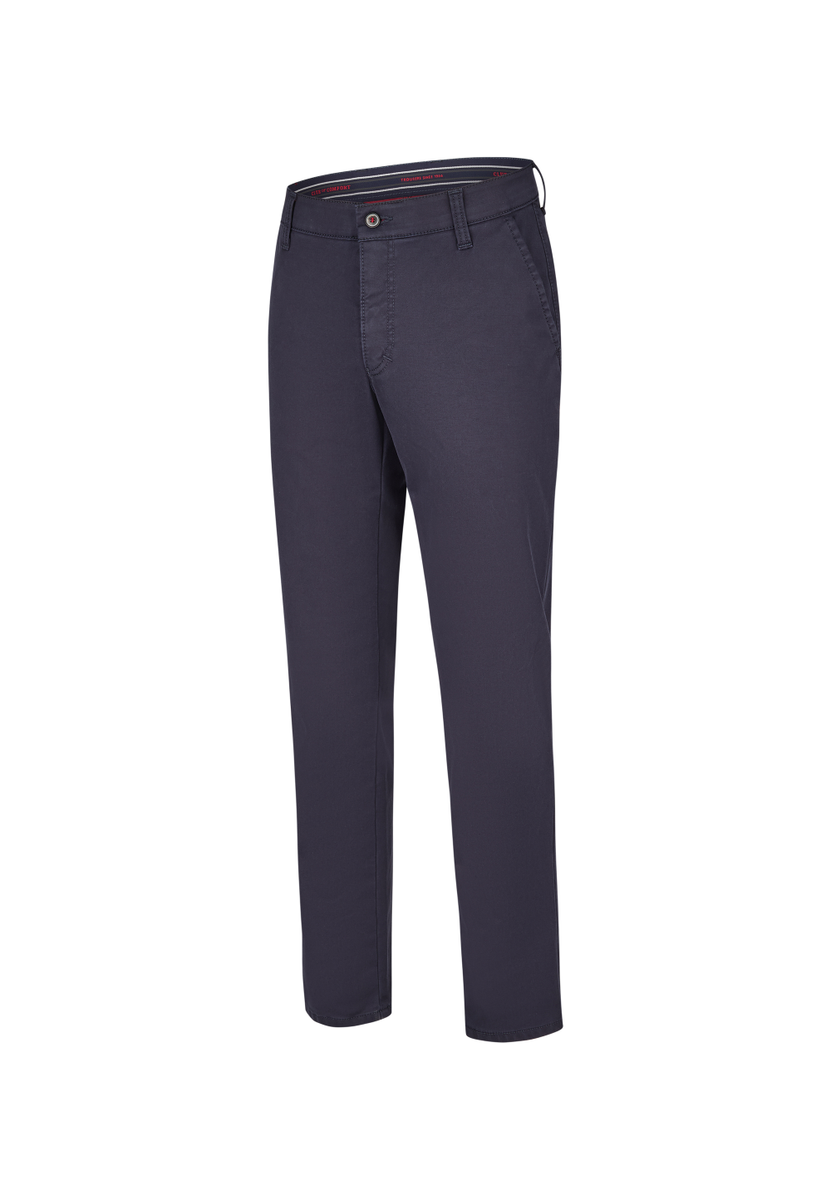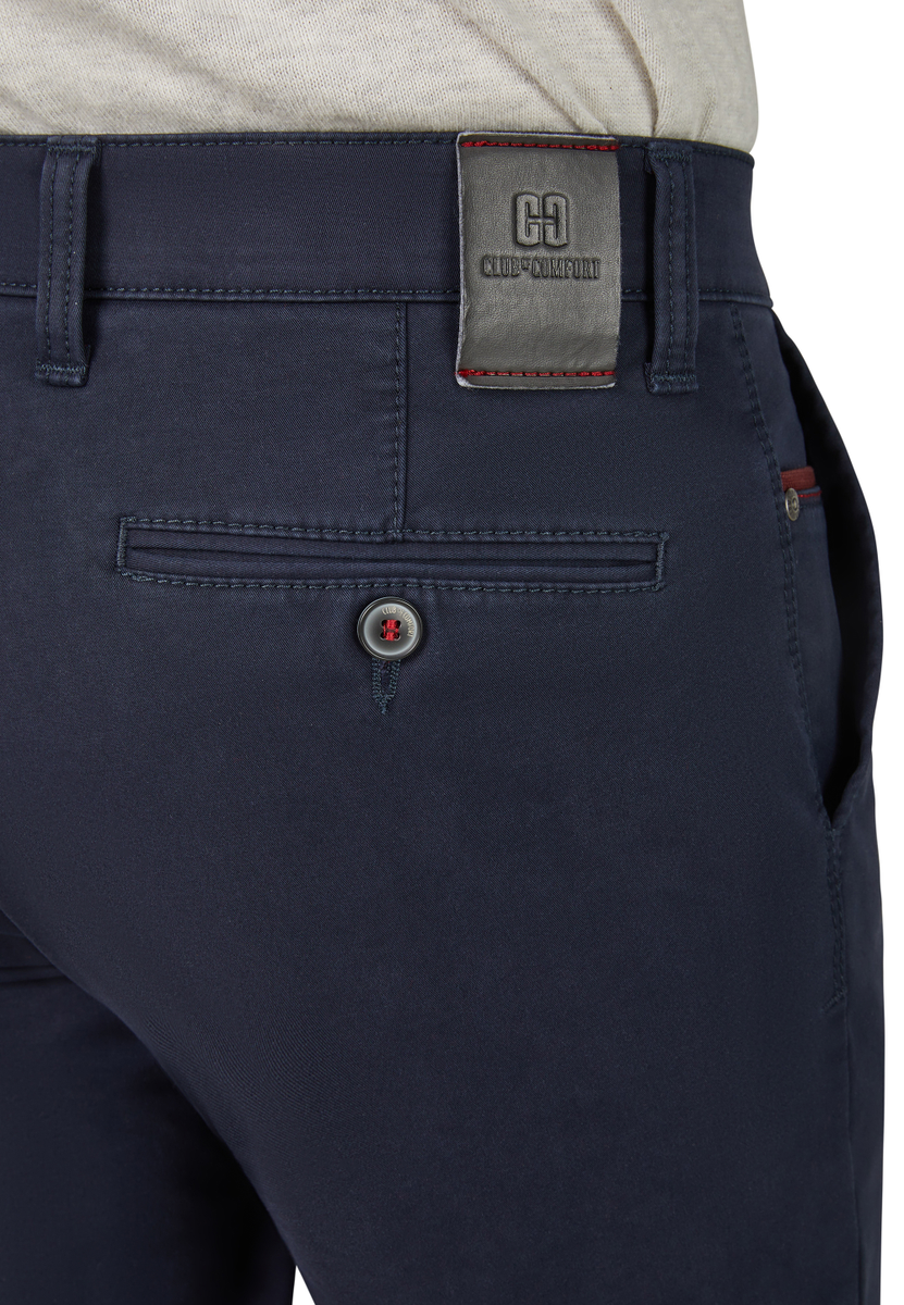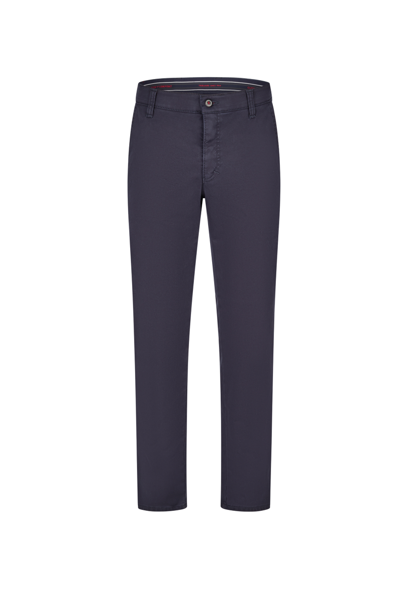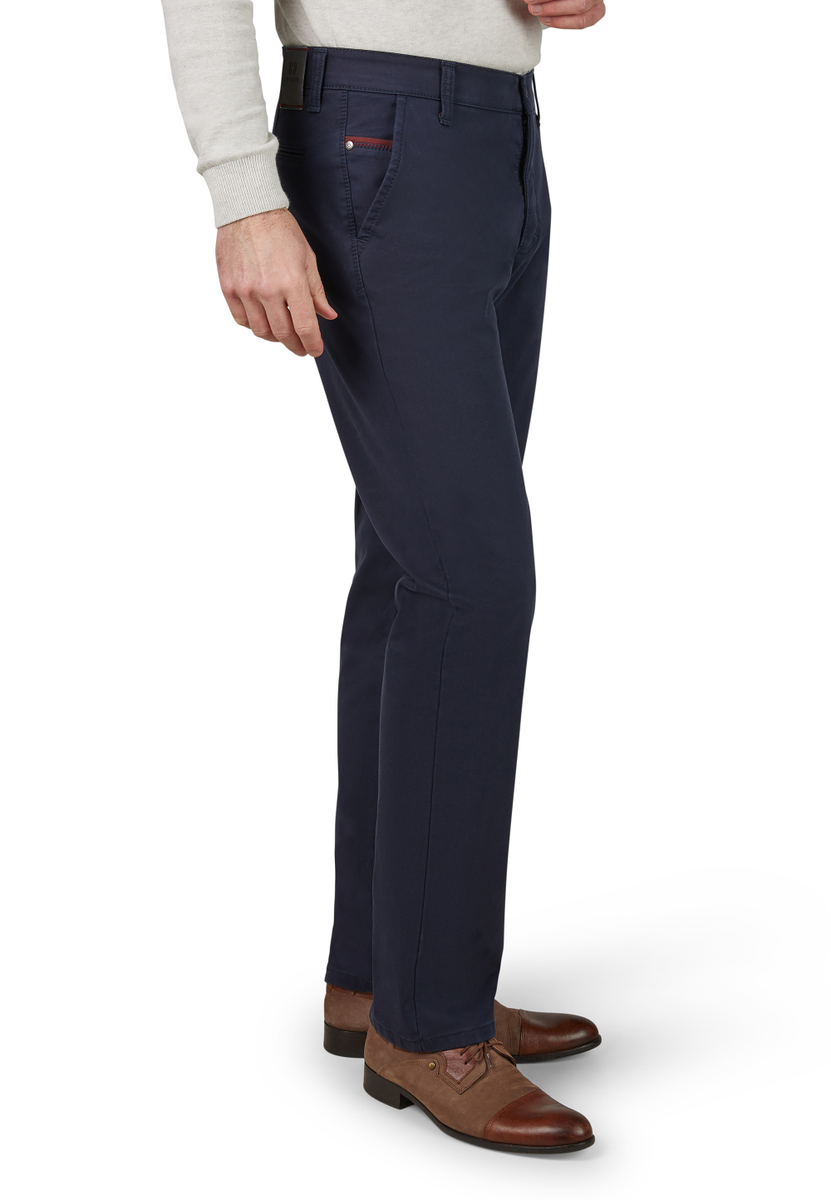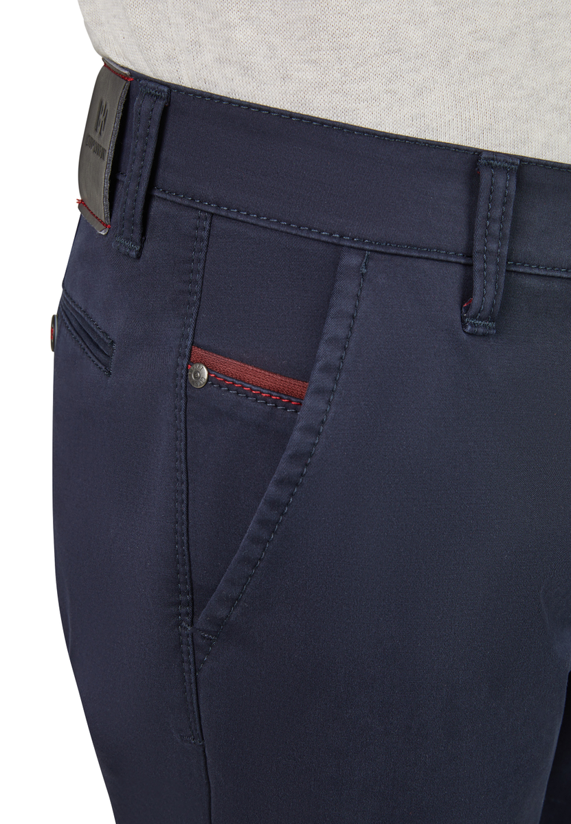 Bequeme Flat Front-Hose mit elastischem Komfortbund und Hemdstopper. Die Münztasche in der rechten Seitentasche bringt einen Hauch Sportivität in den Look. Gerfertigt aus einer High Stretch-Baumwolle mit Thermolite-Wärmeisolierung. Hier wird ein High-Tech-Gewebe aus THERMOLITE® Micro-Fasern direkt auf die Geweberückseite bondiert, das aus Hohlfasern besteht, in dem warme Luft gespeichert und bei Bedarf wieder abgegeben wird. Gewicht: 495 g/lfm. Das Modell bietet eine normale Leibhöhe und wegen der schmaleren Fußweite einen schlankeren Beinverlauf