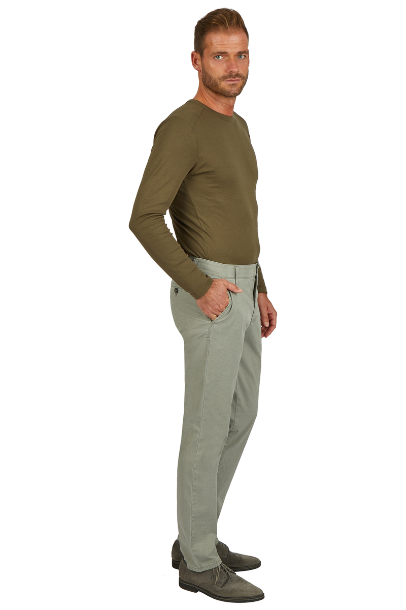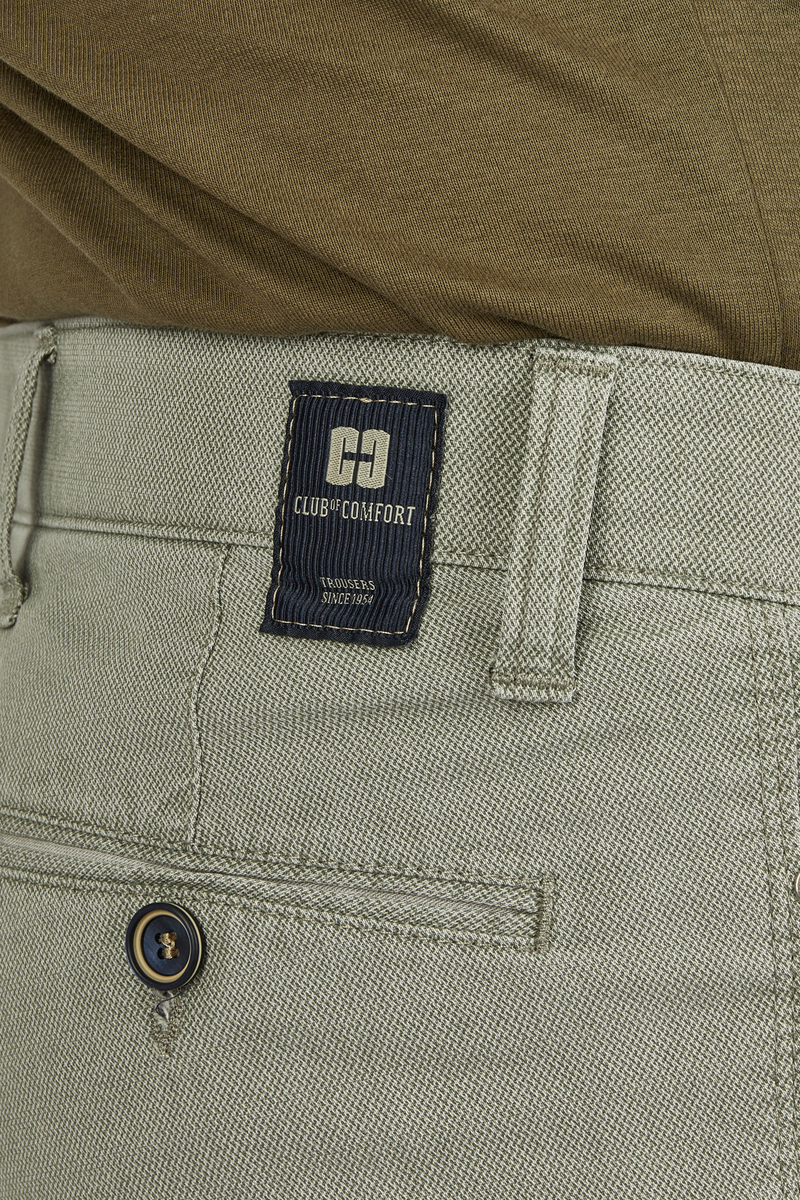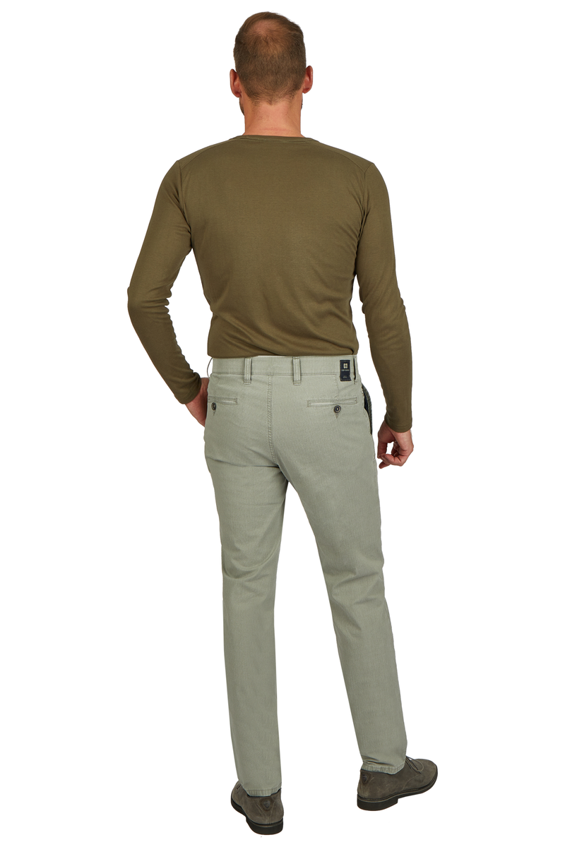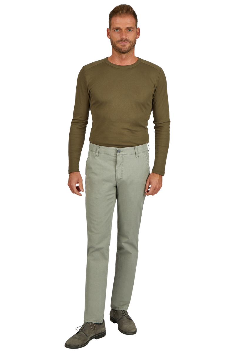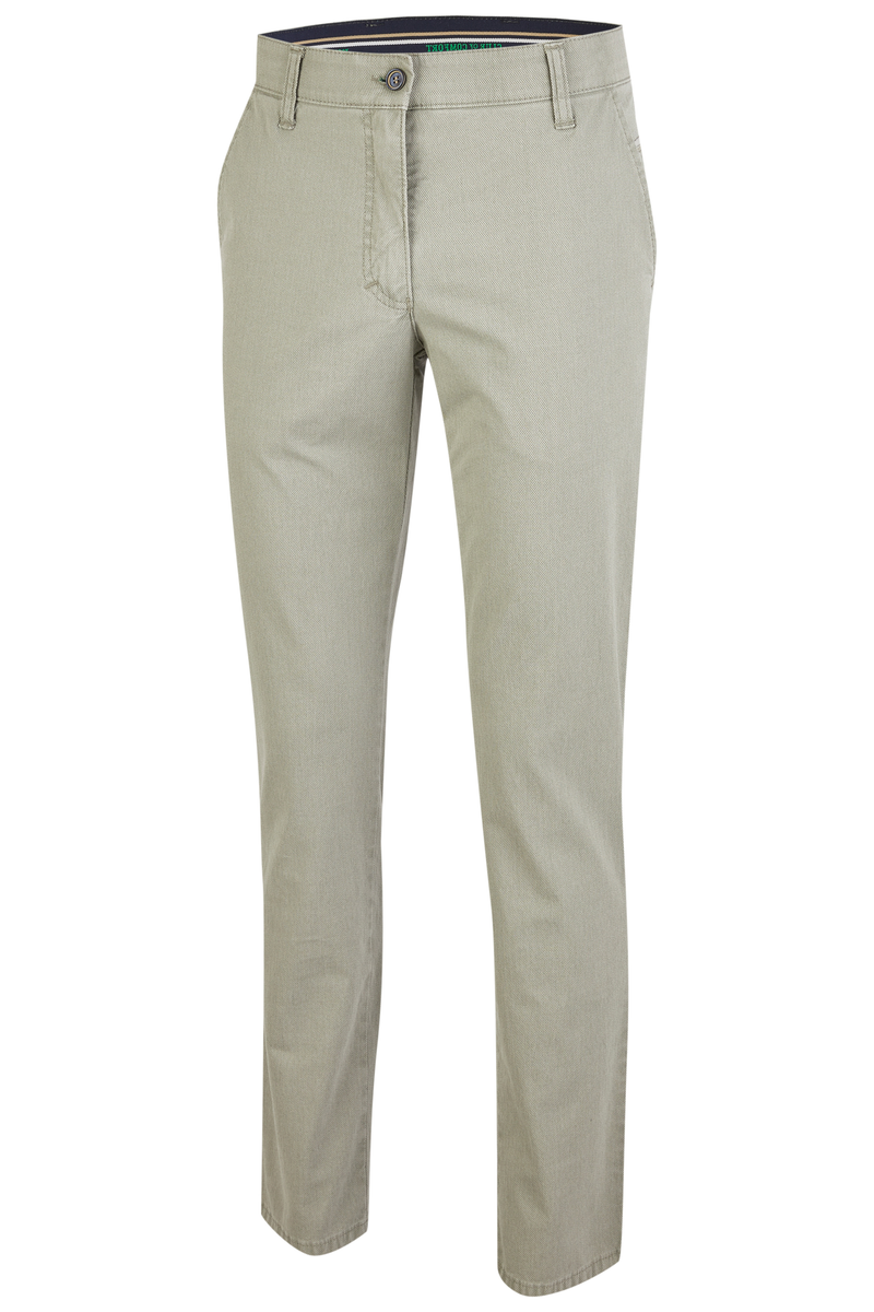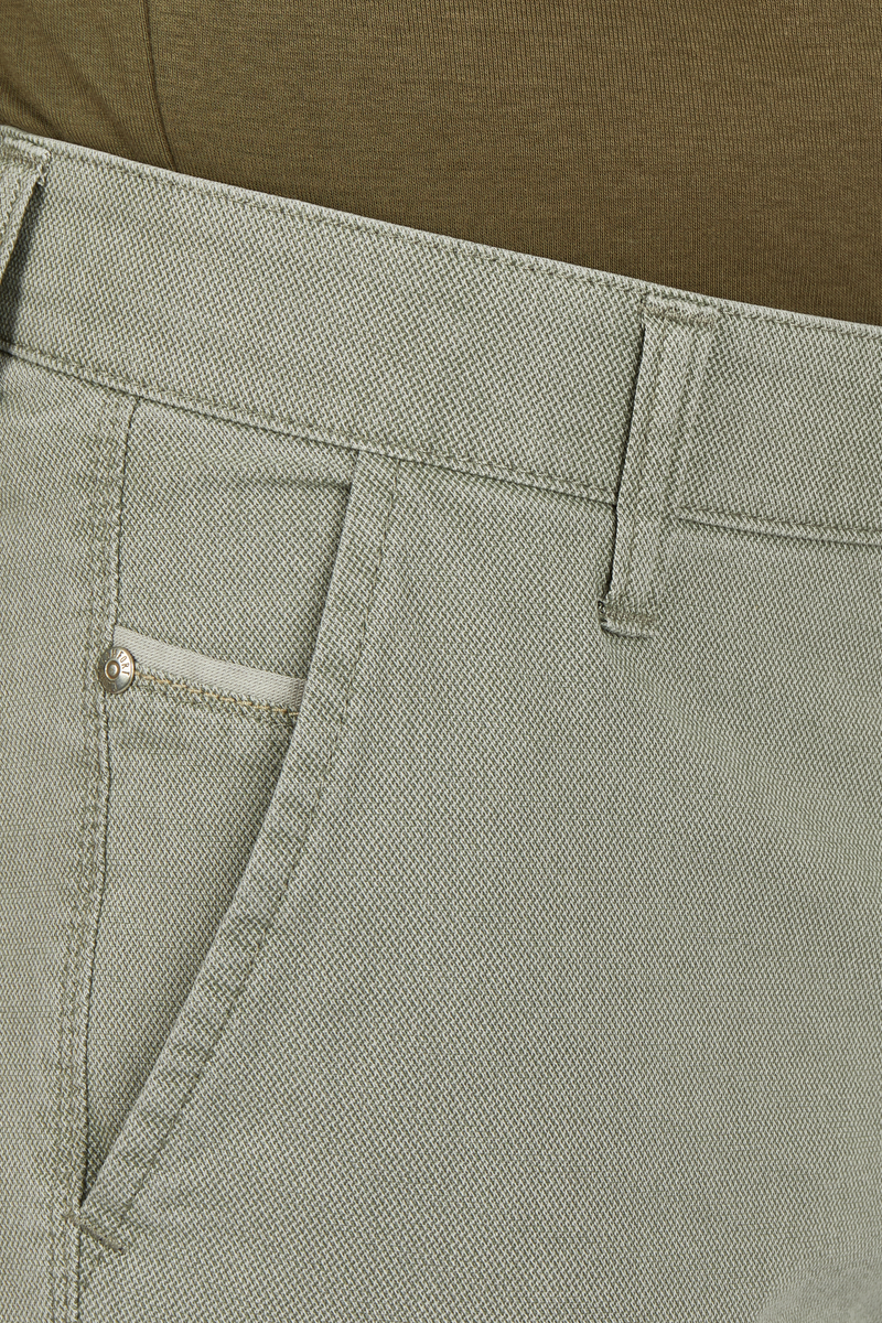 Bequeme Flat Front-Hose mit elastischem Komfortbund und Hemdstopper. Die Münztasche in der rechten Seitentasche bringt einen Hauch Sportivität in den Look. Gefertigt aus einem leichten Baumwoll-Stretch mit markantem Struktur-Print. Das Modell bietet eine normale Leibhöhe und wegen der schmaleren Fußweite einen schlankeren Beinverlauf