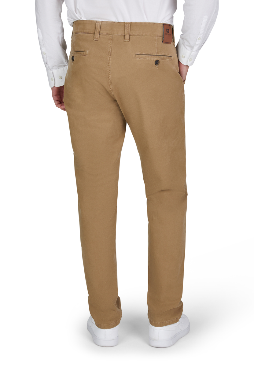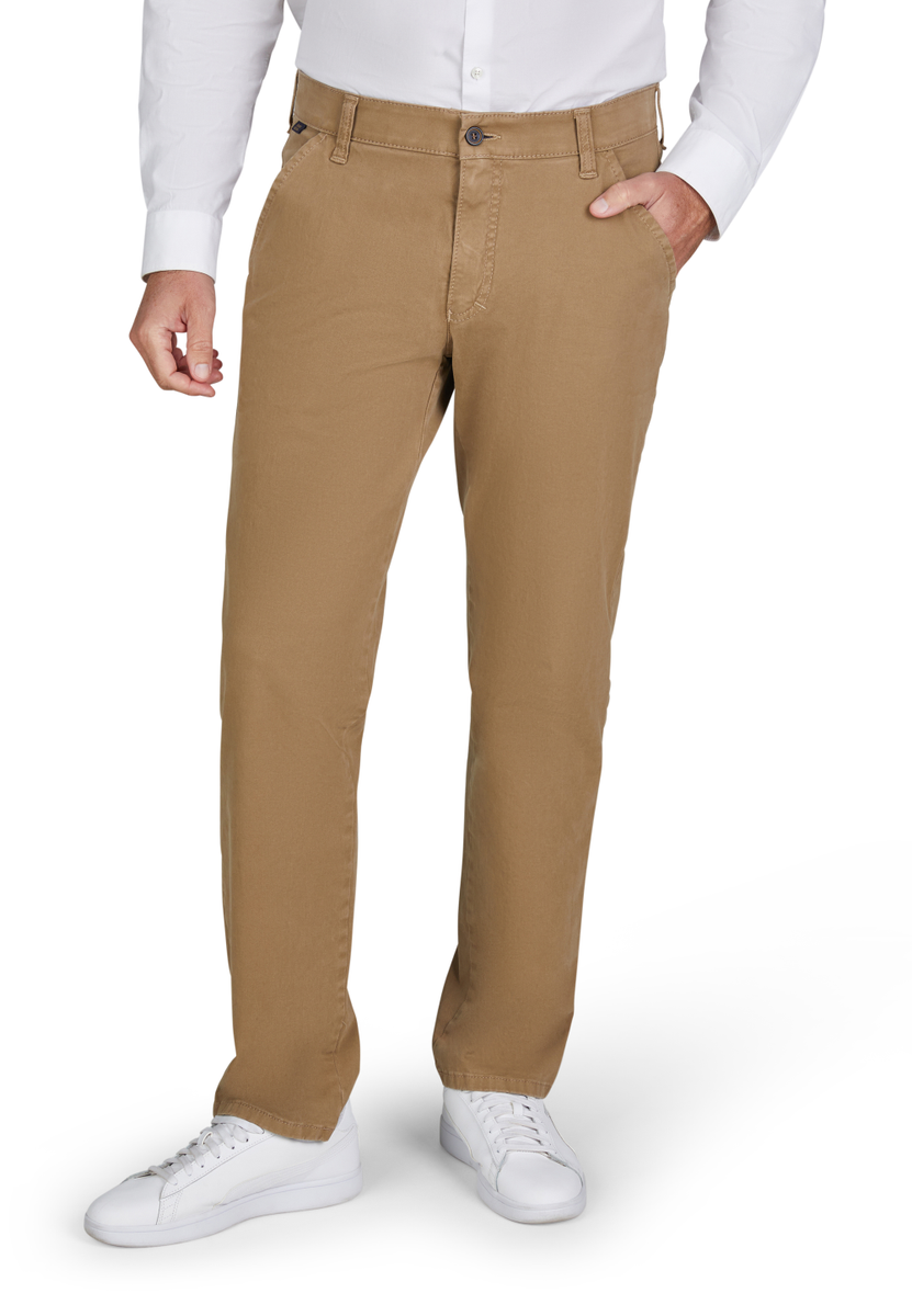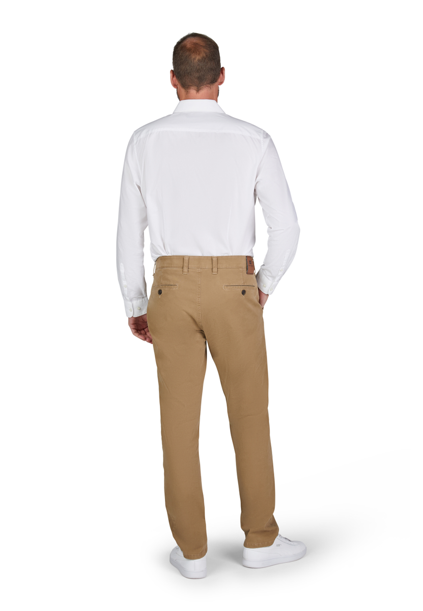 Bequeme Flat Front-Hose mit elastischem Komfortbund und Hemdstopper. Die Münztasche bringt einen Hauch Sportivität in den Look. Gefertigt aus einer bi-elastischen Baumwoll-Qualität mit softem Griff. Gewicht: 405 g/lfm. Das Modell bietet eine normale Leibhöhe und wegen der schmaleren Fußweite einen schlankeren Beinverlauf.