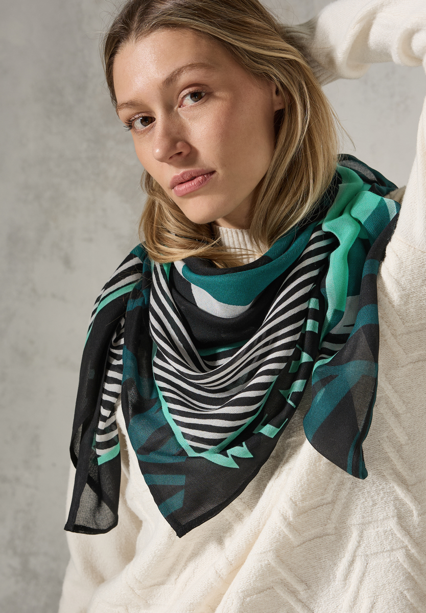 Dieses leichte Tuch von CECIL für Damen bringt mit seinem grafischen Muster und der weichen Modal-Qualität frischen Wind in deine Garderobe. Leichter Schal Grafisches Muster Weiche Modal-Qualität Material: 100% Modal