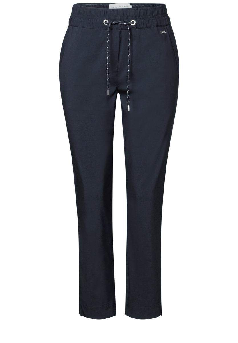 Die Damenhose von CECIL überzeugt mit ihrem Casual Fit und einem elastischen Bund mit Tunnelzug. Mid Waist und Slim Legs sorgen für eine moderne Passform. Der Baumwollmix mit Stretchanteil bietet hohen Tragekomfort. Damenhose Mid Waist und Slim Legs Seitliche Taschen Elastischer Bund mit Tunnelzug Baumwollmix mit Stretchanteil Material: 66% Baumwolle, 30% Polyester, 4% Elasthan