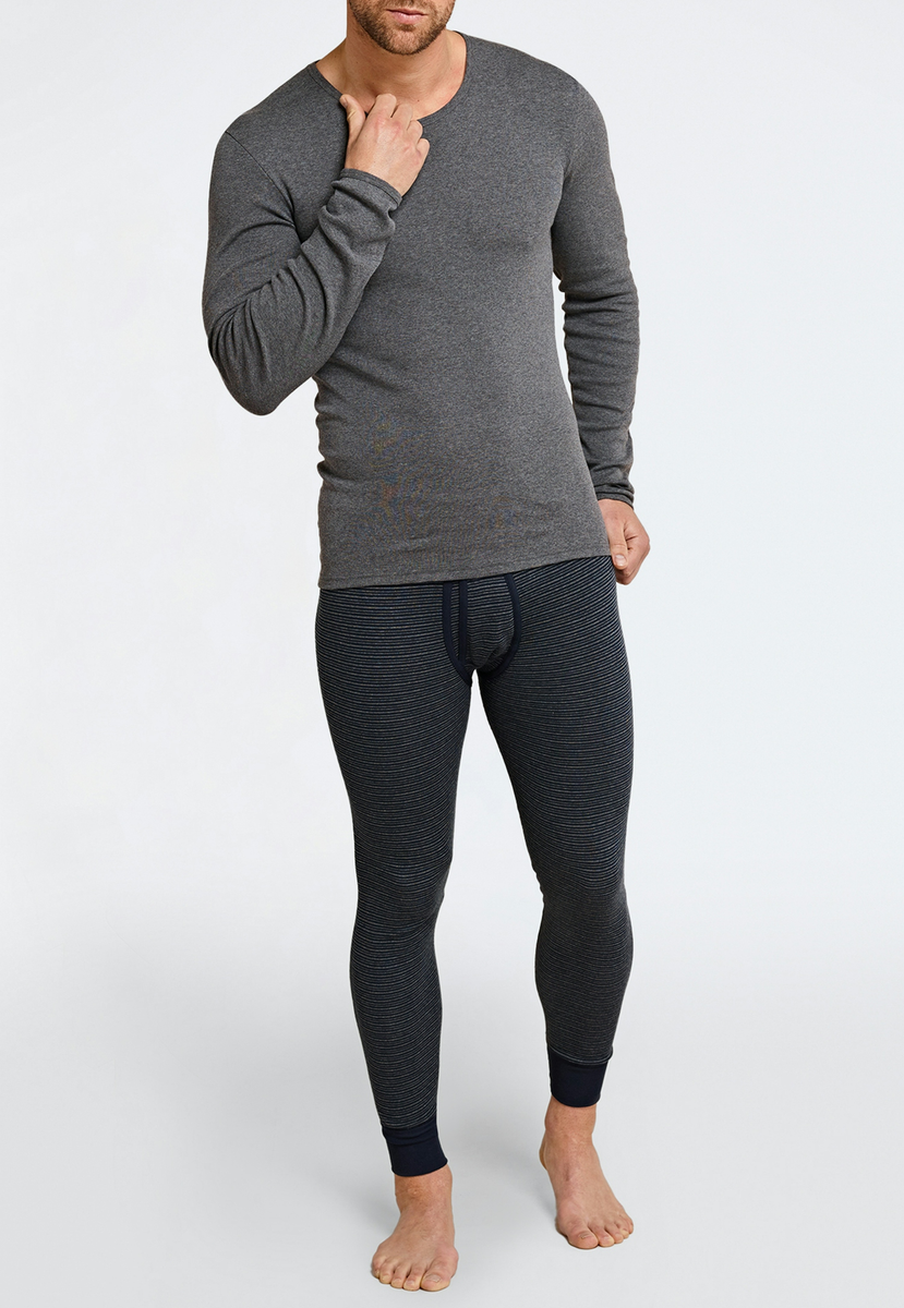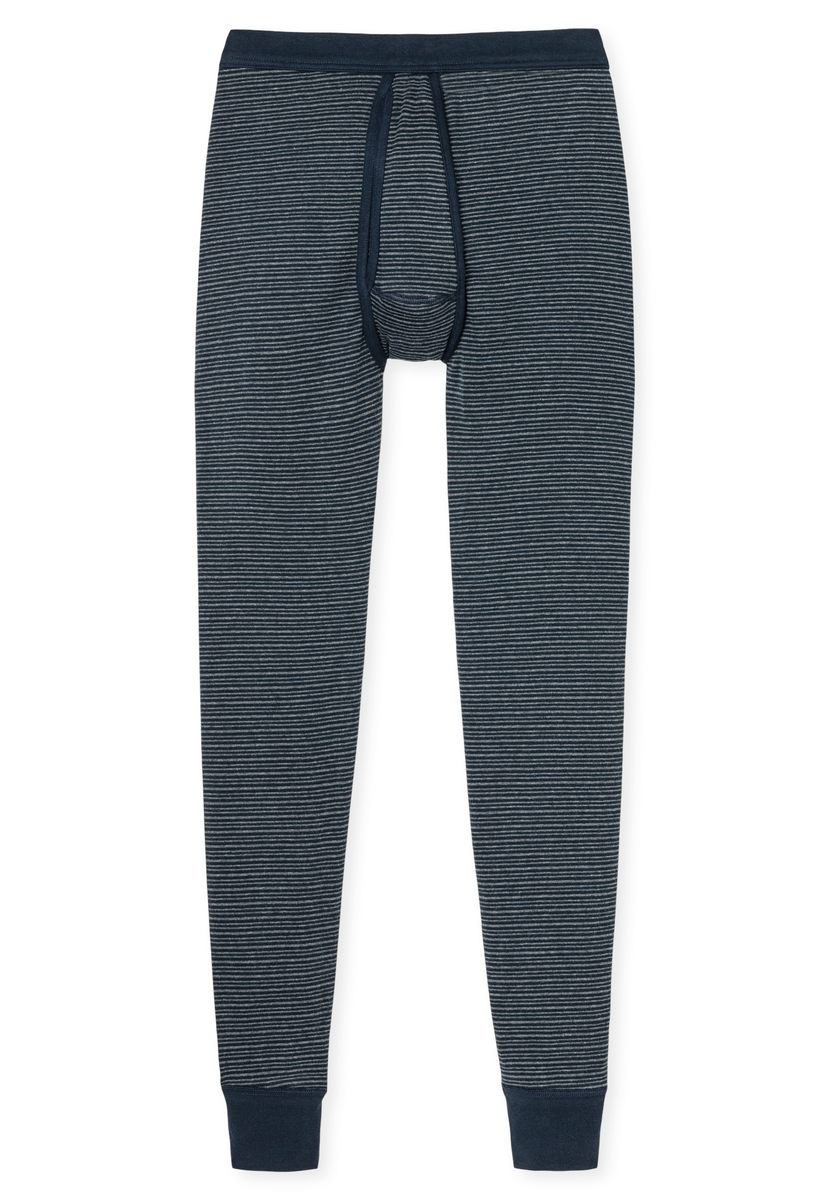 Diese lange, dunkelblau geringelte Herrenunterhose aus der "Feinripp melange" -Serie kombiniert ein besonders hautfreundliches Material mit einem klassischen Design. Hochwertiger Feinripp aus 100% natürlicher Baumwolle sorgt dabei für angenehm weiches Gefühl auf der Haut und bietet gleichzeitig ein optimales Feuchtigkeitsmanagement. Im Zusammenspiel mit dem soften Bund und dem praktischen Eingriff wird die lange Unterhose zum komfortablen Wäschestück bei kühleren Temperaturen.