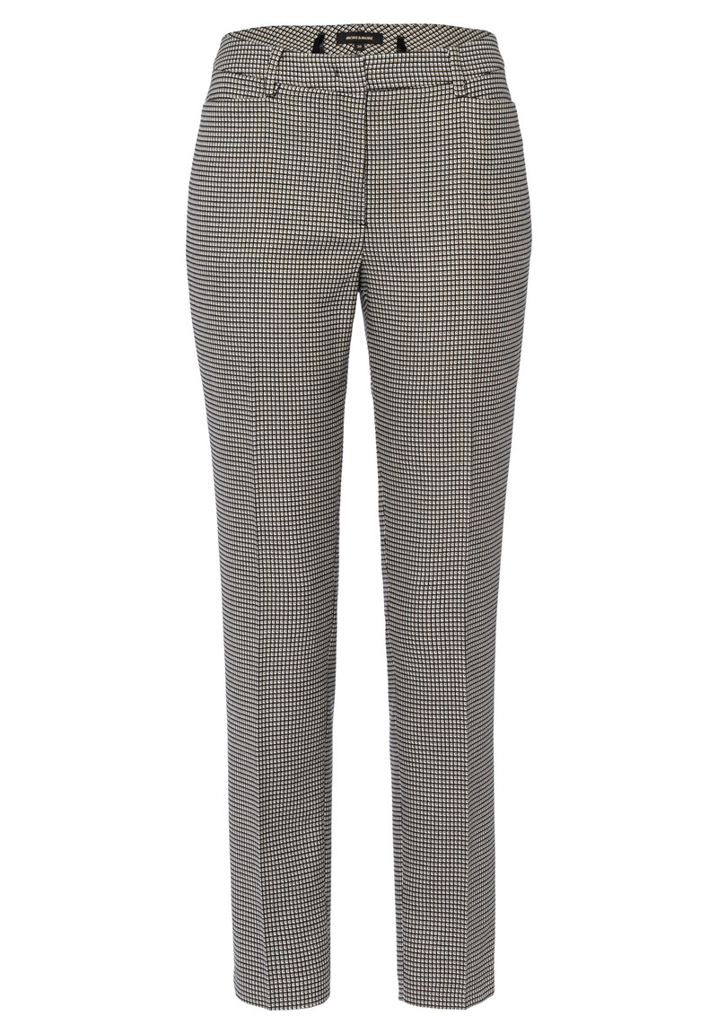 Die gerade geschnittene Hose von MORE & MORE mit ecru/beige/schwarzem Mini-Dessin wird mit passendem Blazer zum stilvollen Business-Anzug.