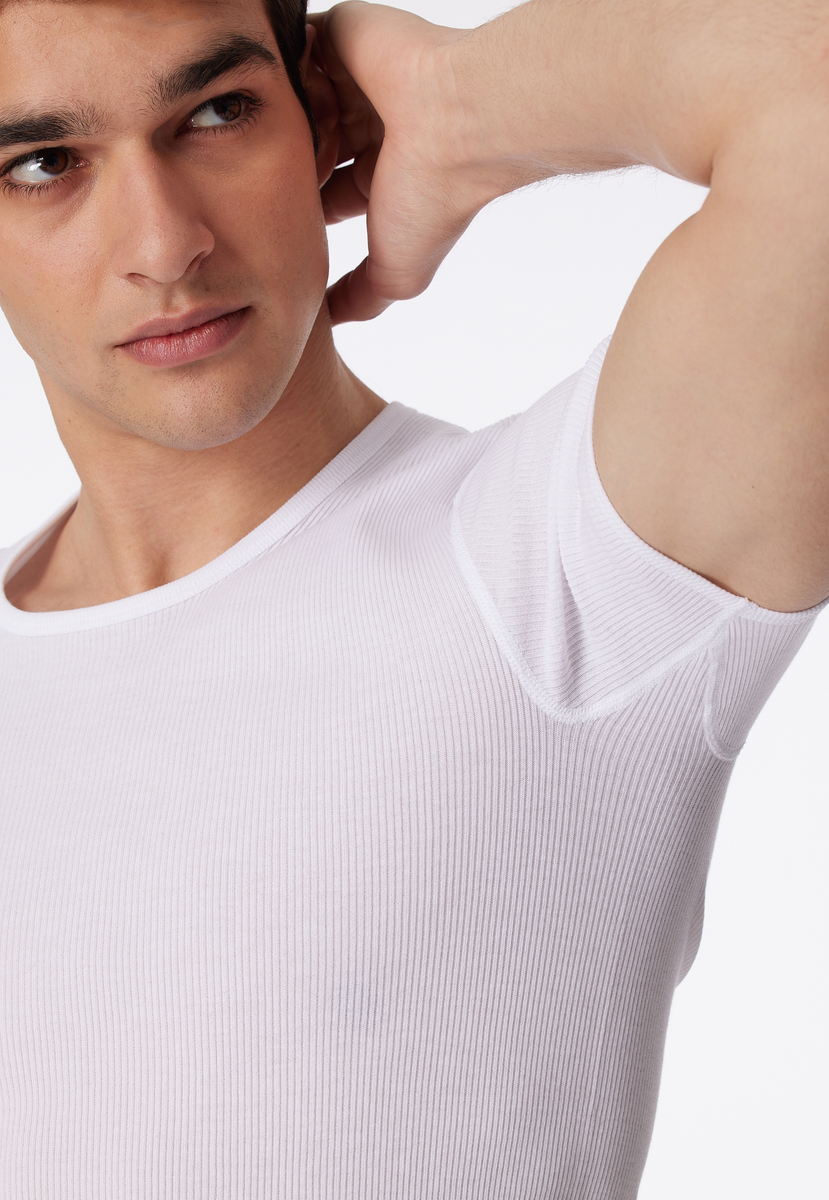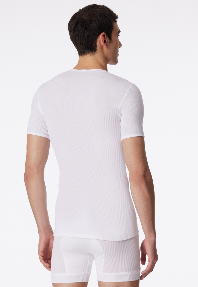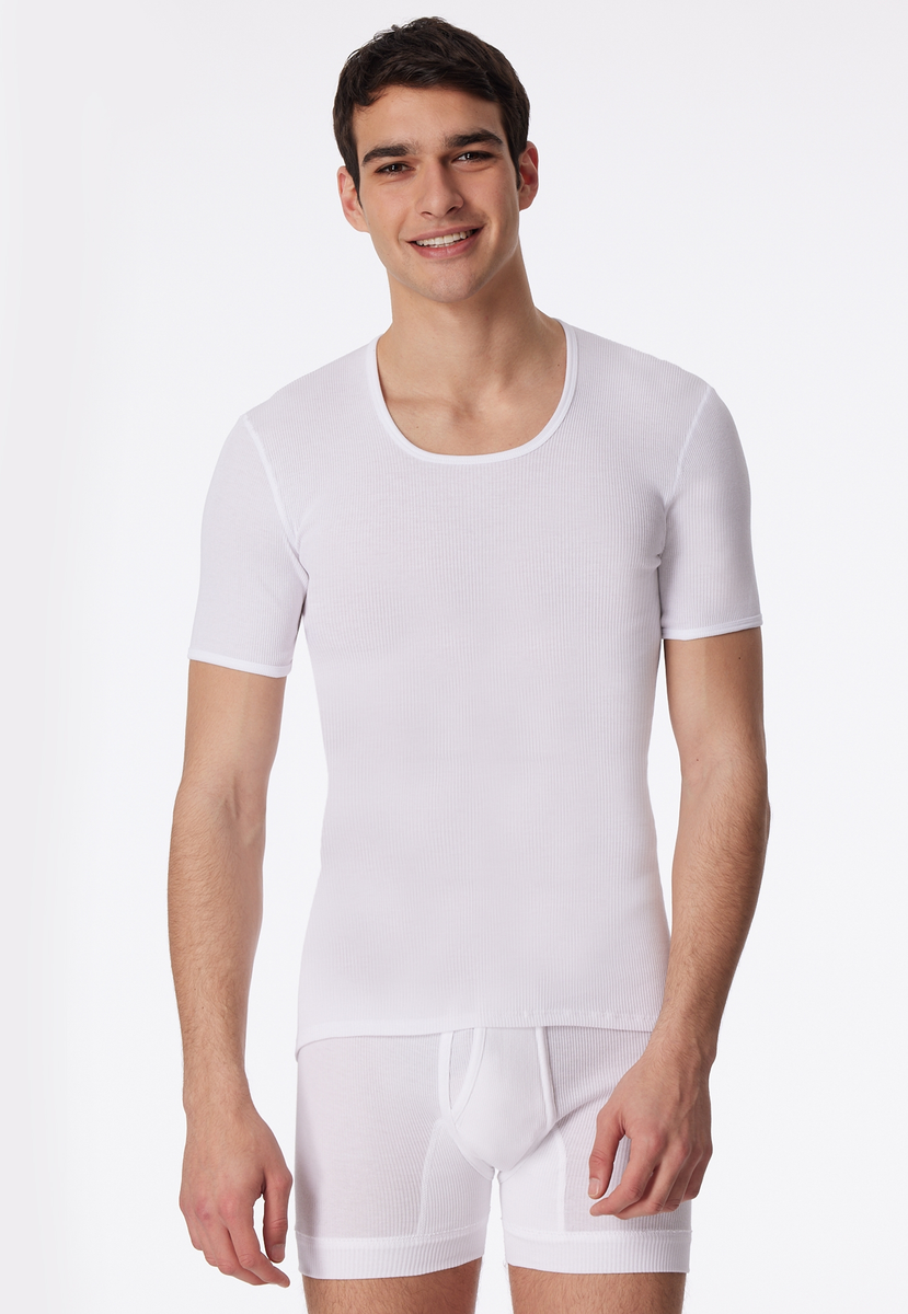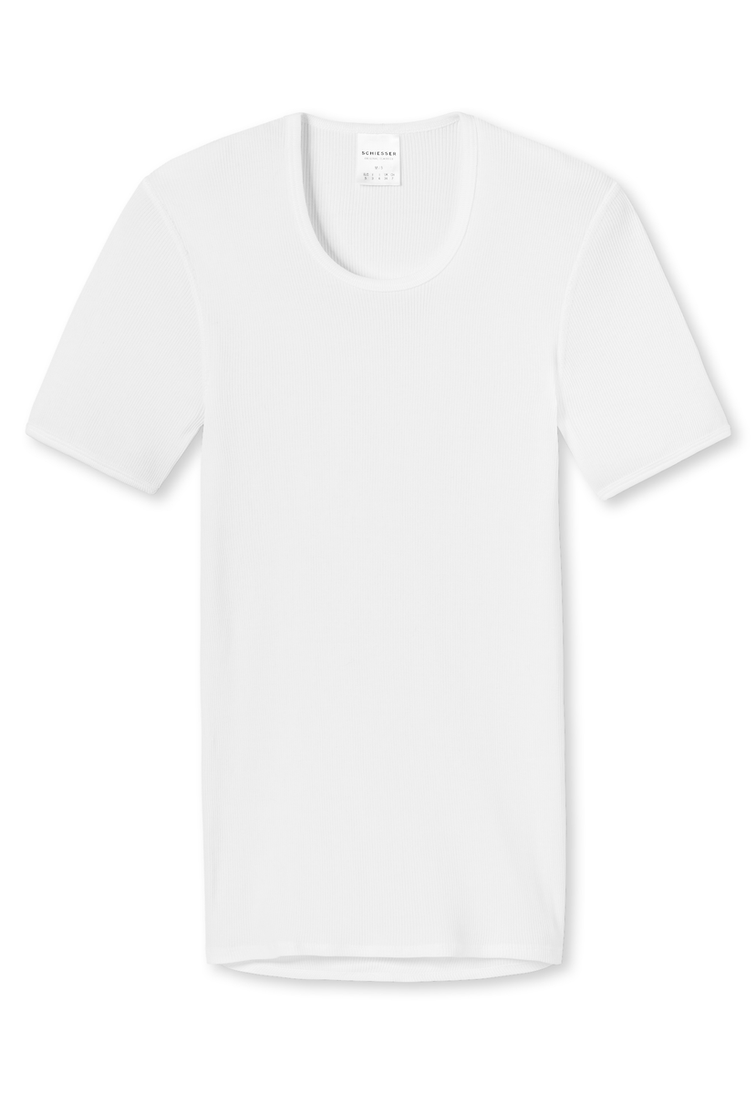 Ein wahrer Wäsche-Klassiker: Dieses weiße Herren-Kurzarmshirt aus der SCHIESSER Serie "Original Classics" kombiniert strapazierfähiges Material mit einer optimalen Passform. Angenehm weicher Doppelripp aus 100 % zweifädiger Baumwolle und die etwas längere Rückenpartie gewähren dabei hohen Tragekomfort und bleiben auch nach der 95-Grad-Wäsche sowie nach vielen Trockner-Gängen in Topform. Ein formstabiles, klassisches Rundhals-Shirt in bester SCHIESSER Qualität.