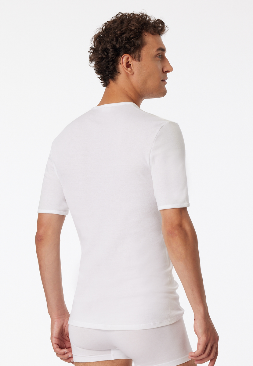 Wäsche-Originale in Bestform: Dieses weiße Herren-Kurzarmshirt aus der SCHIESSER-Serie "Original Classics" kombiniert traditionellen Feinripp mit hohem Komfort. 100% supergekämmte Baumwolle fühlt sich dabei angenehm weich an auf der Haut und wird mit dem runden Halsausschnitt, der längeren Rückenpartie und ganz ohne störende Seitennähte besonders bequem. Ein wahrer SCHIESSER-Klassiker in bester Qualität!