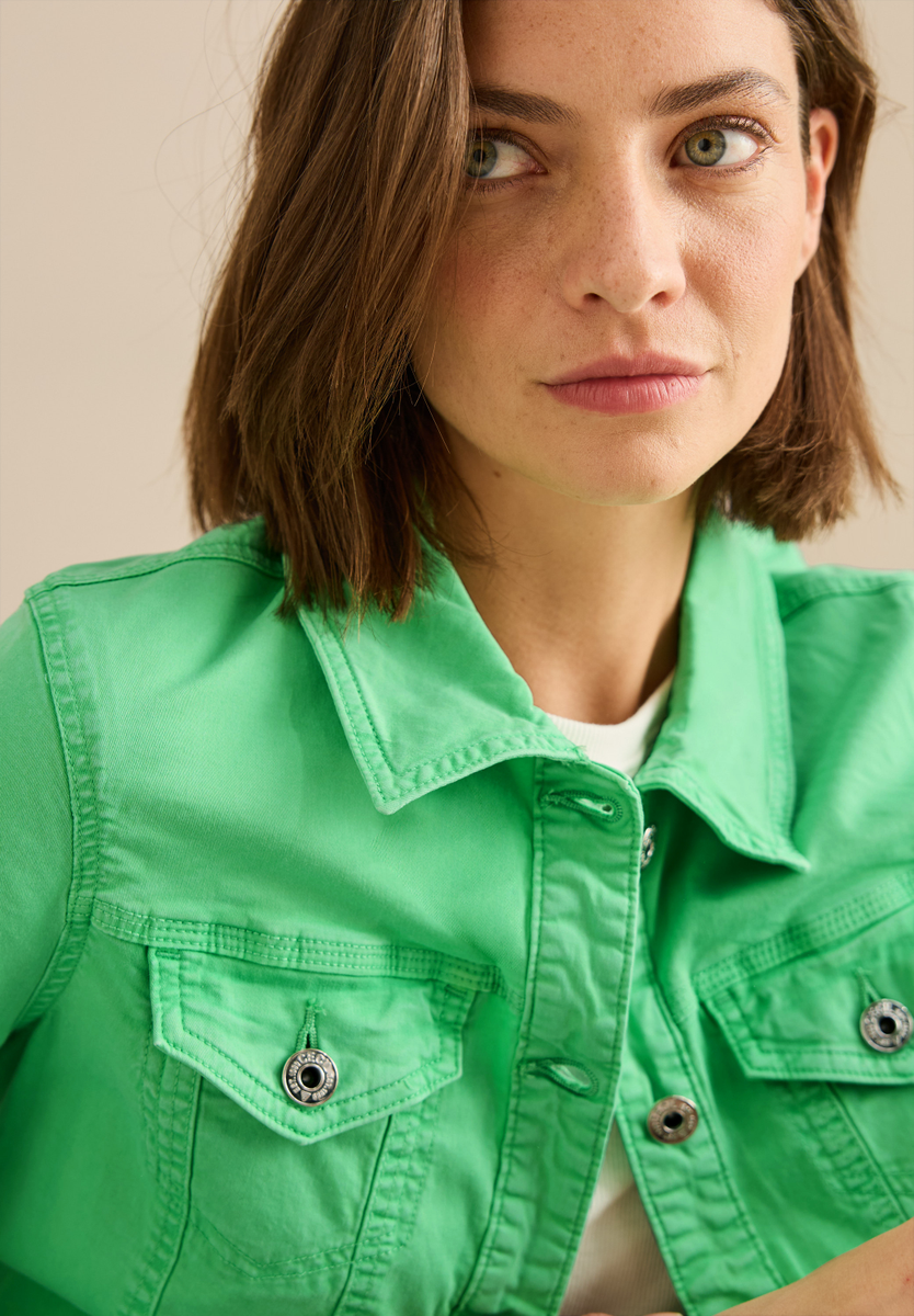 Die Jeansjacke von CECIL für Damen ist ein zeitloser Begleiter mit klassischen Details. Der Hemdkragen, Brusttaschen und seitliche Eingrifftaschen machen sie besonders vielseitig. Der Baumwollmix mit Stretchanteil sorgt für einen angenehmen Tragekomfort. Jacke mit Brusttaschen Hemdkragen Seitliche Taschen Baumwollmix mit Stretchanteil Material: Obermaterial: 98% Baumwolle, 2% Elasthan; Futter: 100% Baumwolle