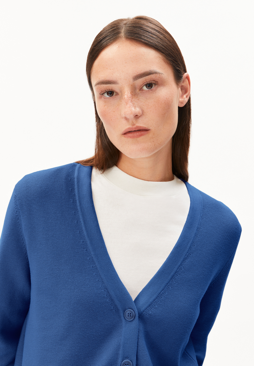 The MENAAL LINKS LINKS cardigan, made from 100% organic cotton, features a straight fit and a classic V-neckline. The fine knit feels soft on the skin and ensures a pleasant wearing comfort.