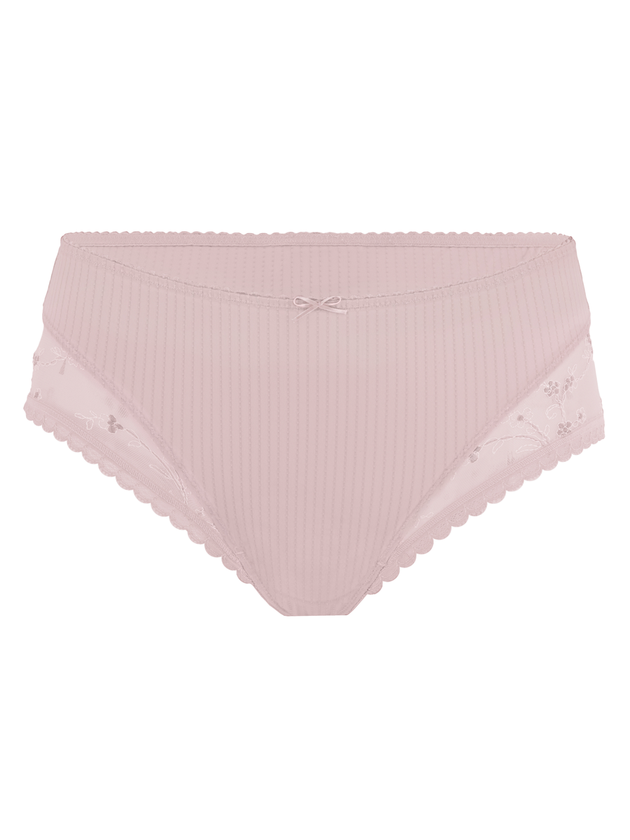 * Softe Microfaser im modernen Streifen-Look kombiniert mit filigraner Stickerei und dekorativem Spitzenband