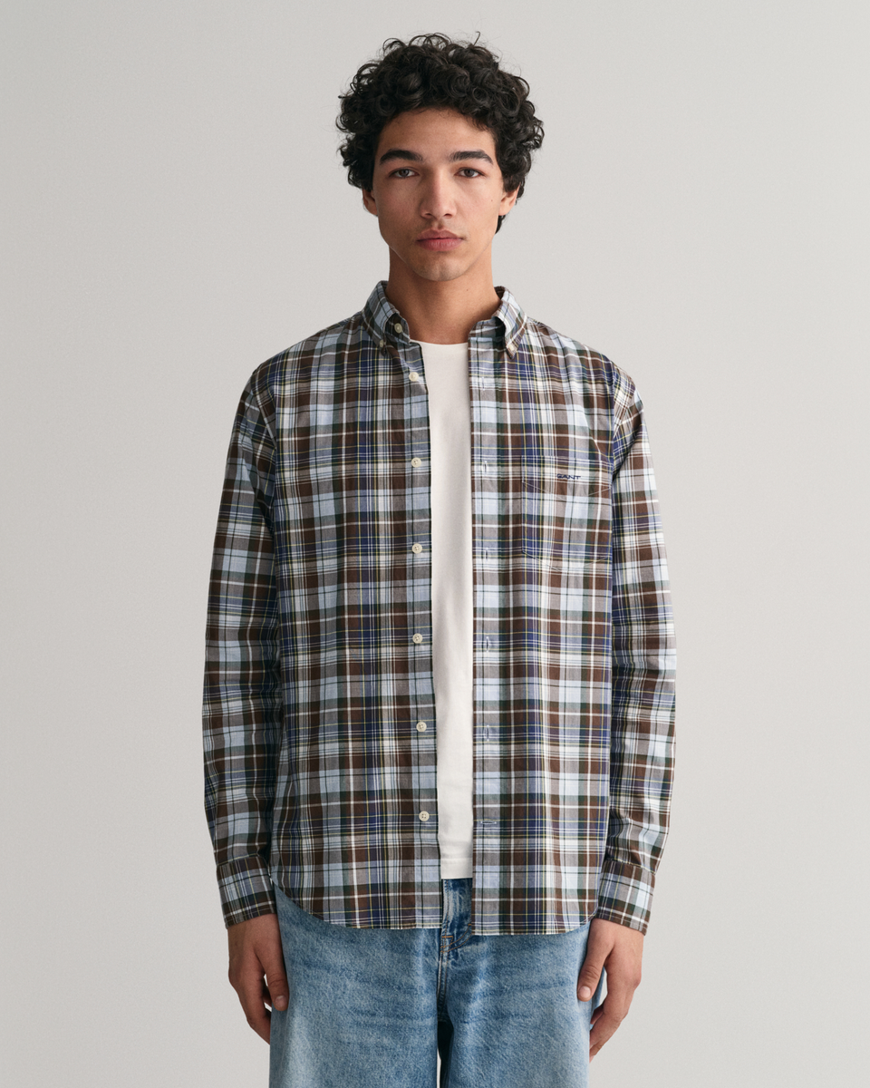 Regular Fit Popeline Hemd mit mittelgroßem Karo