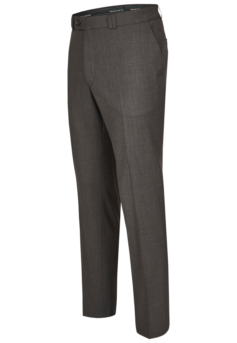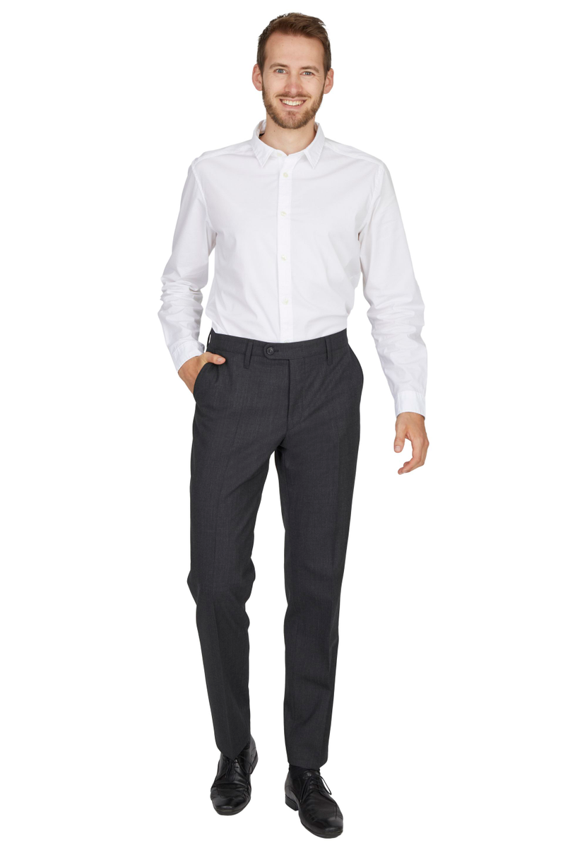 Bequeme Flat Front-Hose mit elastischem Komfortbund und Hemdstopper. Dazu die praktische Bundverlängerung mit Knopf und Haken. Gefertigt aus einer aktuellen Woll-Misch-Qualität, die maschinenwaschbar ist. Gewicht: 330 g/lfm Dieses Modell verfügt über eine normale, in K-Größen über eine niedrige Leibhöhe, und ein gerades Bein.