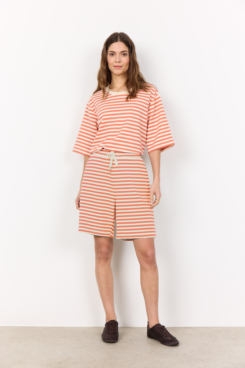 SC-BARNI 33 ist ein Paar Shorts aus einer bequemen Mischung aus 48% Modal, 48% Polyester und 4% Elastan. Die Shorts haben ein Streifenmuster, einen elastischen Bund mit Kordelzug für eine verstellbare Passform und einen lockeren Schnitt, der viel Bewegungsfreiheit bietet. In Kombination mit einem passenden Oberteil und Turnschuhen lässt sich ein lässiges und funktionelles Outfit für verschiedene Aktivitäten zusammenstellen.