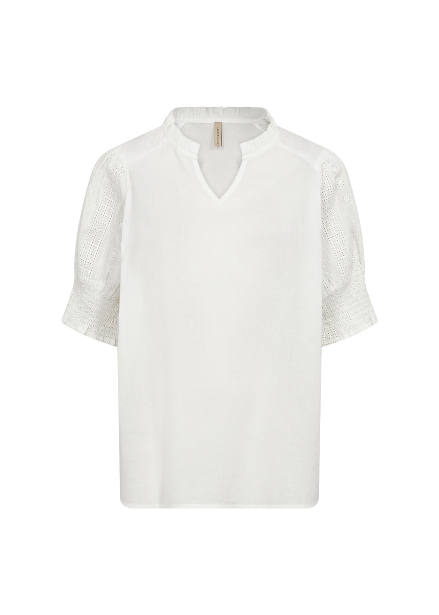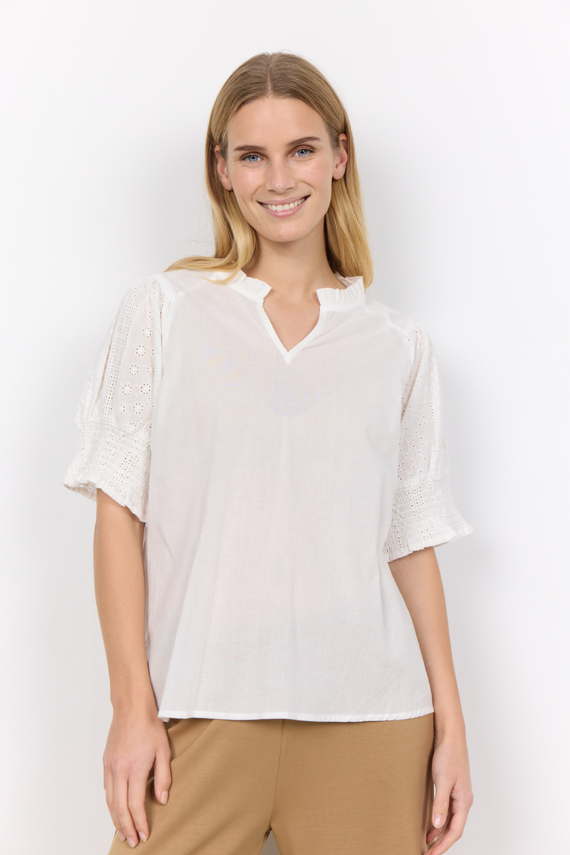 SC-FABIA 1 ist eine Bluse aus 100% Bio-Baumwolle, die für Komfort und Eleganz steht. Die Bluse hat einen V-Ausschnitt, der durch Ösenspitze an den Ärmeln ergänzt wird, und eine lockere Passform, die sich vielseitig tragen lässt. Kombinieren Sie sie mit einer maßgeschneiderten Hose oder einem fließenden Rock, um einen raffinierten Look zu kreieren.