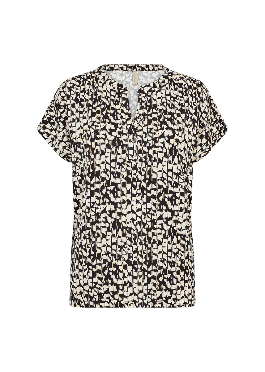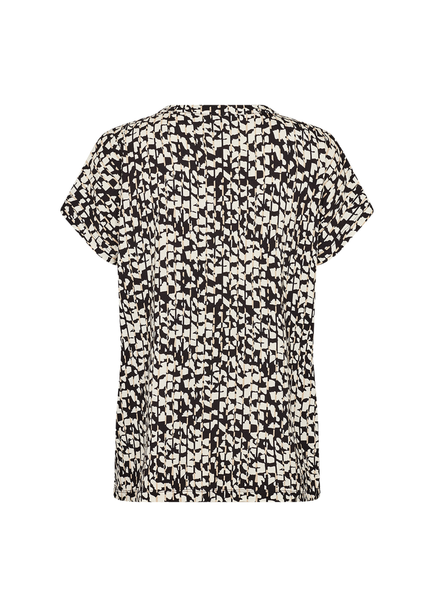SC-MARICA AOP 317 ist ein modisches T-Shirt aus einer komfortablen Mischung aus 93% Lyocell und 7% Elastan. Das kurzärmelige Oberteil hat ein geometrisches Druckmuster, einen V-Ausschnitt und eine lockere Passform. Dieses Oberteil passt sowohl zu maßgeschneiderten Hosen als auch zu lässigen Jeans für einen eleganten und dennoch entspannten Look.