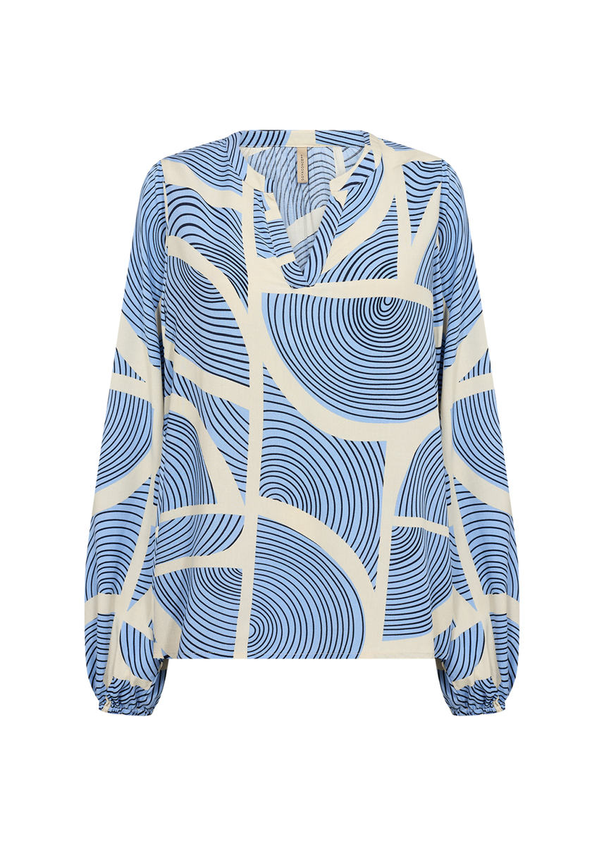 SC-OLIVERA 1 ist eine moderne Bluse aus 100% ECOVERO Viskose. Das Oberteil zeichnet sich durch einen femininen V-Ausschnitt, lange Ballonärmel mit elastischen Bündchen, eine lockere Passform und einen grafischen Allover-Druck aus. Kombinieren Sie es mit einer maßgeschneiderten Hose oder einem Bleistiftrock für einen atemberaubenden Look.
