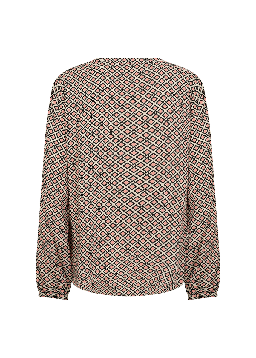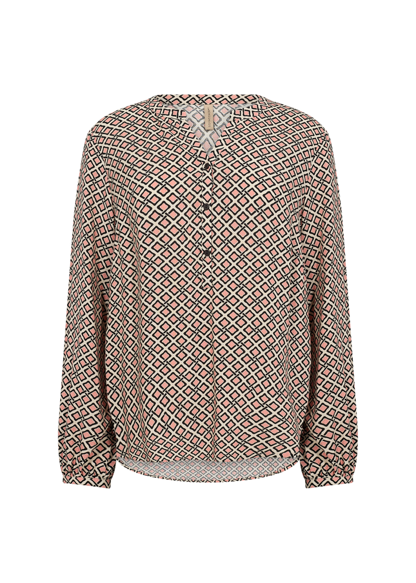 Die Bluse SC-PAN 2 besteht aus 100% ECOVERO Viskose. Sie ist mit einem geometrischen Druck versehen, hat einen V-Ausschnitt mit kurzer Knopfleiste und lange Ärmel, die dank der geknöpften Manschetten elegant ausgestellt sind. Kombiniere sie mit einer maßgeschneiderten Hose und Slippern für einen eleganten Look, der sich sowohl für das Büro als auch für Freizeitausflüge eignet.