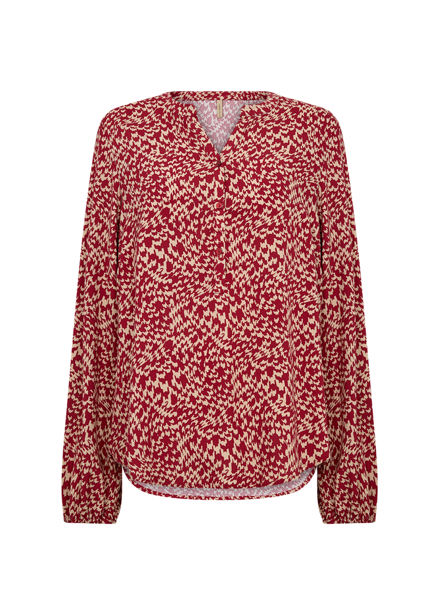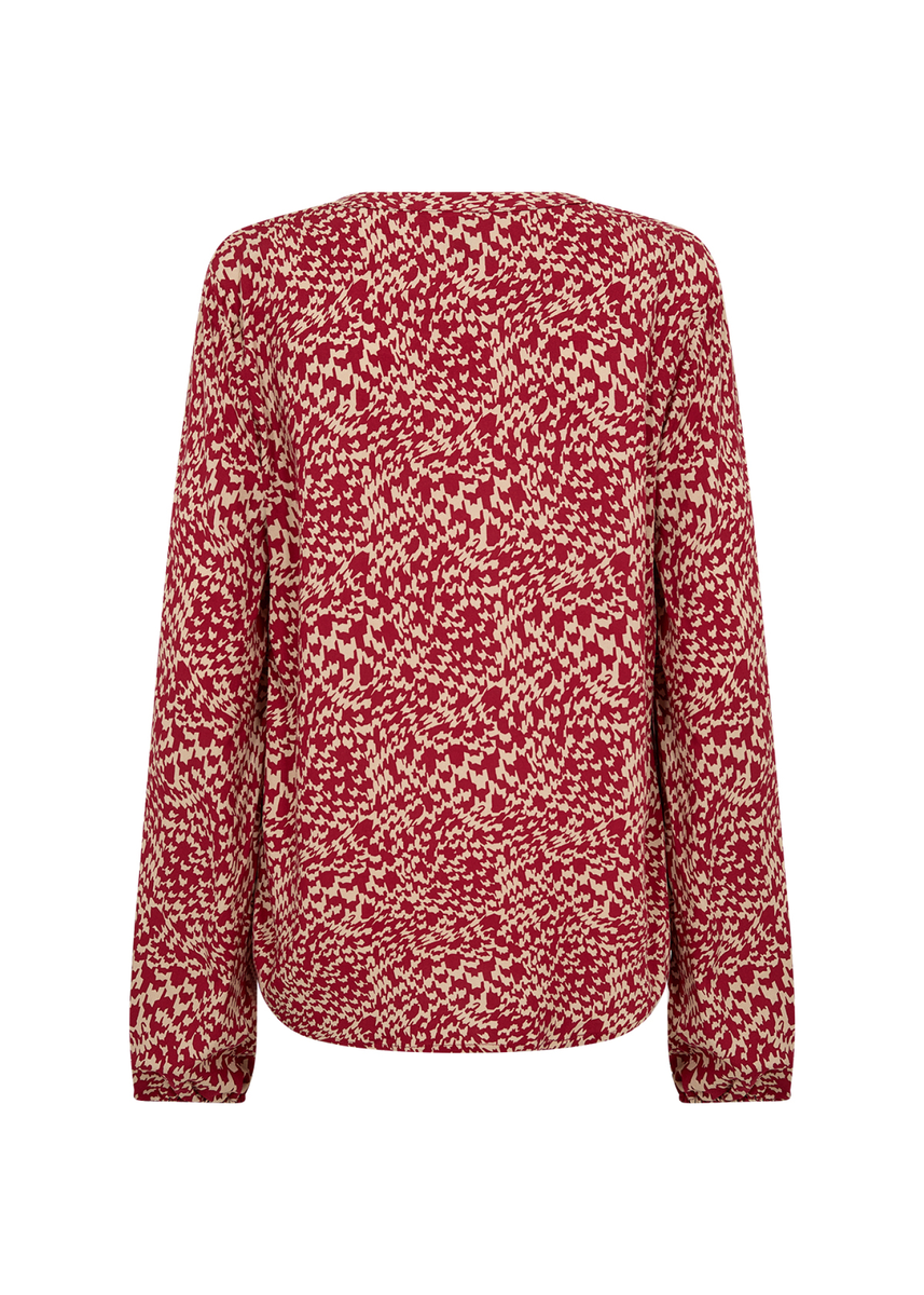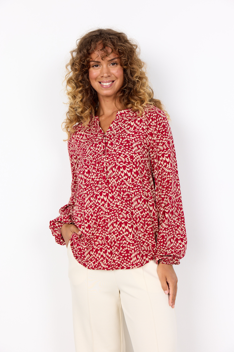 SC-VAN 1 bietet die Bluse aus 100% LENZING™ ECOVERO™ Viskose. Das Design umfasst einen V-Ausschnitt mit Knopfleiste, lange Ärmel mit elastischen Bündchen und einen abstrakten Print. Kombiniere die Bluse mit einer maßgeschneiderten Hose oder einer Jeans für abwechslungsreiche Looks.