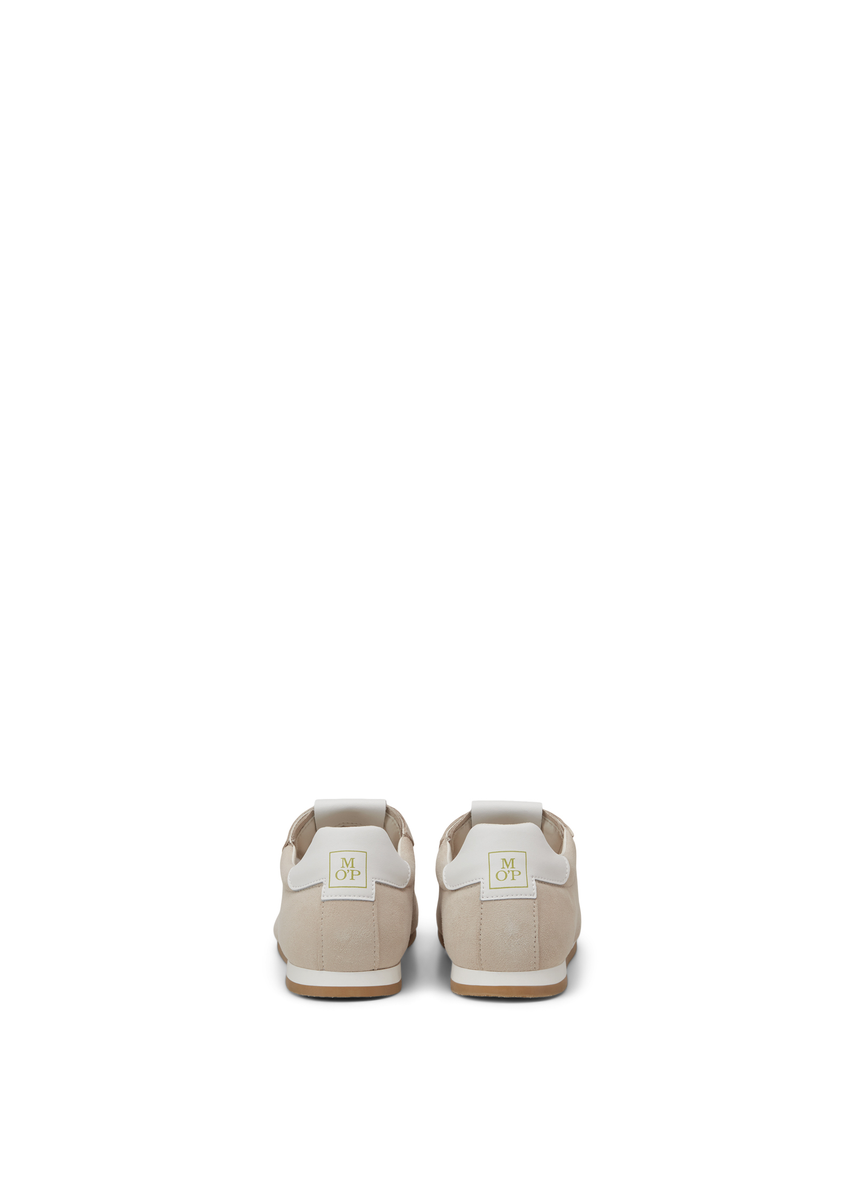 Retro-Sneaker aus softem Velours-Ziegenleder mit kontrastfarbenen Glattlederakzenten für einen dynamischen Look. Innen sorgen ein atmungsaktives Futter und eine herausnehmbare Innensohle aus recycelter Mikrofaser für hohen Tragekomfort. Die zweifarbige TR-Laufsohle bietet sicheren Grip, während flache Bio-Baumwollschnürsenkel und eine dezente Logo-Perforierung sportliche Details setzen. Ein gepolsterter Fersenrand rundet den Support ab.