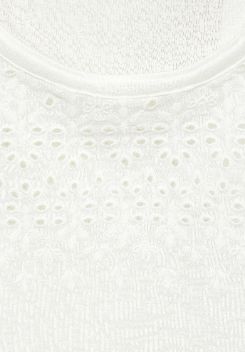 Das Sommer-T-Shirt von CECIL für Damen ist ein lässiges Kurzarmshirt mit einem praktischen Gummibund für eine bequeme Passform. Es zeichnet sich durch feminine Lochstickerei-Details aus, die dem Shirt eine charmante und verspielte Note verleihen. Hergestellt aus bequemer Jersey-Qualität bietet es ein angenehmes Tragegefühl und ist ideal für warme Sommertage geeignet. Kurzarmshirt Gummibund Feminine Lochstickerei Bequeme Jersey-Qualität Material: 55% Polyester, 45% Viskose
