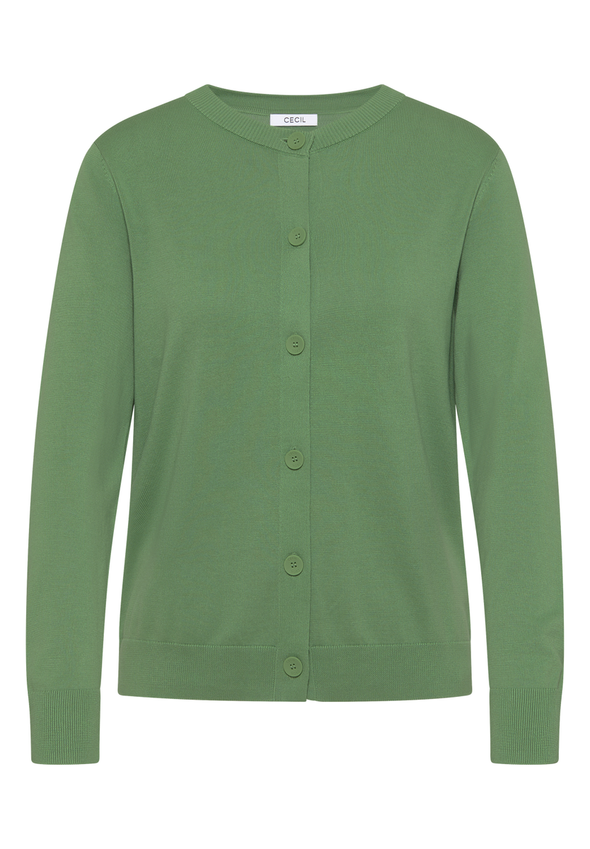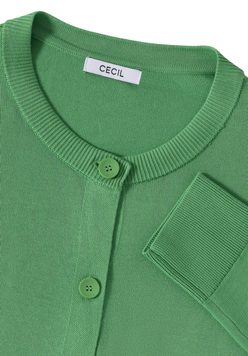 Die Strickjacke von CECIL für Damen überzeugt mit klassischem Rundhalsausschnitt und einer durchgehenden Knopfleiste. Die angenehme Strickqualität sorgt für gemütlichen Tragekomfort im Alltag. Ein vielseitiger Cardigan, der sich unkompliziert kombinieren lässt. Cardigan Rundhalsausschnitt Langarm Knopfleiste Angenehme Strickqualität Material: 60% Baumwolle, 40% Viskose