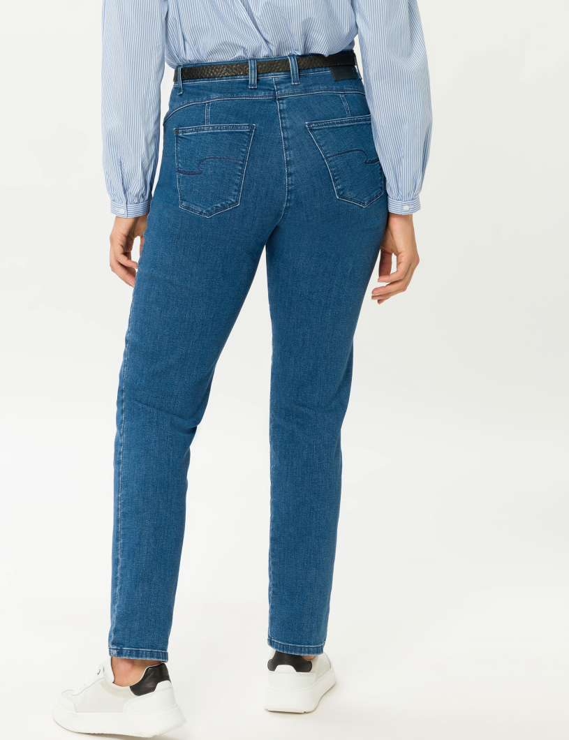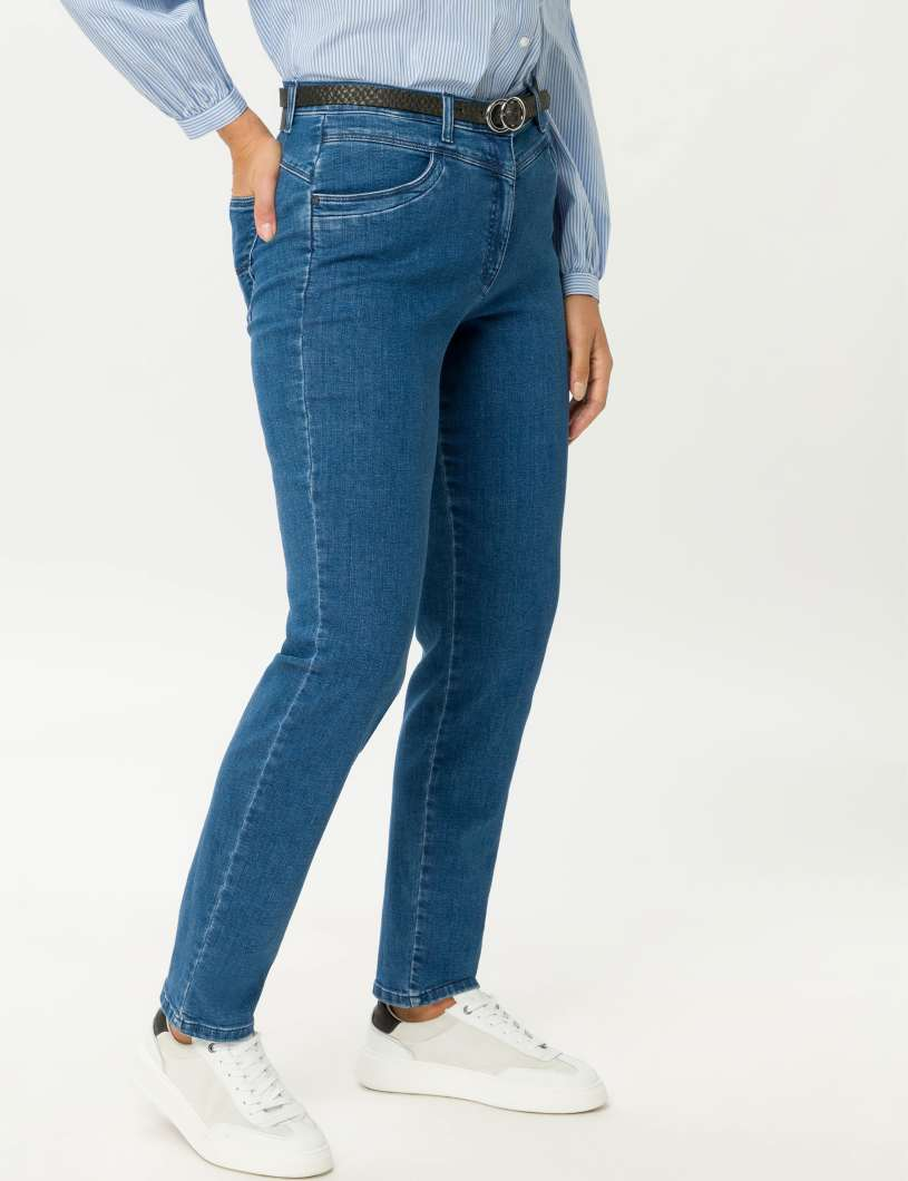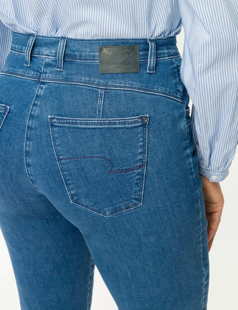 Ein Basic für Damen ist der Style CAREN NEW von Raphaela. Im Zusammenspiel mit Sneakern oder Stiefeletten rundet diese Five-Pocket-Jeans als Kombinationstalent jedes Outfit ab. Die Comfort Plus Fit Damenhose mit hoher Taille greift durch einen konischen Beinverlauf weibliche Rundungen auf, ohne einzuengen. Durch die aufgesetzten Gesäßtaschen erhält die Hose eine typische Note. Zusätzlich ist sie mit dekorativen Stickereien gestaltet. Für einzigartige Authentizität steht der Denim und vereint das charakteristische Warenbild mit hoher Strapazierfähigkeit. Bei dieser Five-Pocket-Jeans bietet der pflegeleichte und hautsympathische Baumwollmix zudem ein exzellentes Tragegefühl.