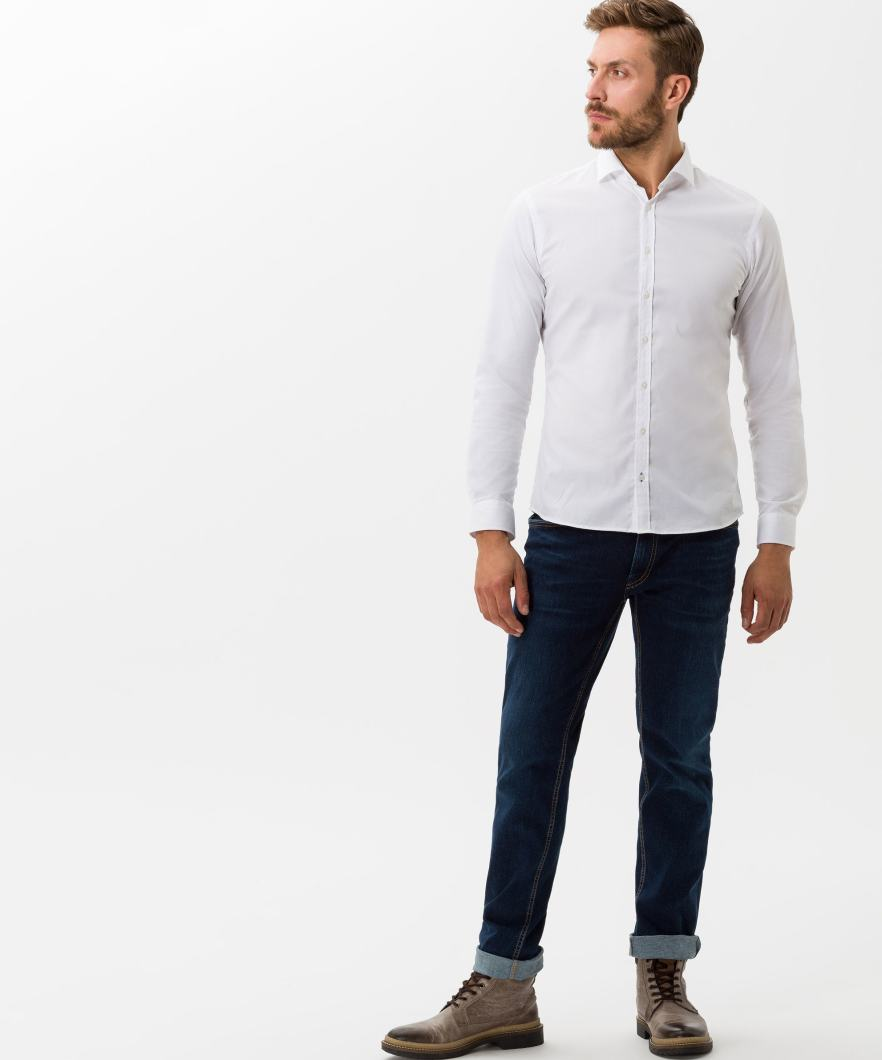 Feel Hi-FLEX. Bei den innovativen Hi-FLEX-Jeans wird ein authentischer Denimlook mit extrem hoher Elastizität für spielerische Bewegungsfreiheit kombiniert. Diese Five-Pocket-Jeans erweitert die aktuelle Hi-FLEX-Kollektion mit ihrer Fashion Stone-Waschung. Damit zeichnet sich die moderne Hi-FLEX-Jeans durch höchste Formstabilität mit perfekten Dehn- und Rücksprungsverhalten aus, die durch modernste DUAL-FX Garne erzielt werden. Gleichzeitig präsentiert sich der typische Ringgarn-Denim in einer zeitgemäßen Used-Optik. Das Ergebnis ist eine extrem strapazierfähige, maskuline und superelastische Five-Pocket-Jeans in topmodischer Slim Fit-Silhouette. Hi-FLEX ist und bleibt eben einfach unglaublich spannend. Form: