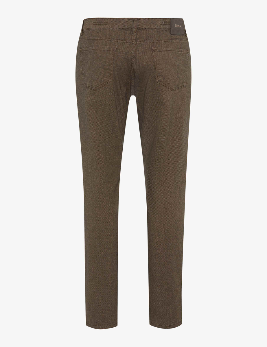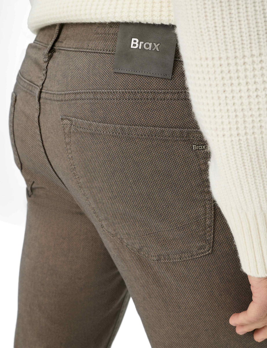 Ein vielseitiger Stil. Mit ihrer klaren Linienführung und dem maskulinen Charakter ist die Five-Pocket-Hose im Style CHUCK die perfekte Ergänzung für vielseitige Freizeit-Outfits. Die schlanke Silhouette im Modern Fit und mit normaler Leibhöhe sorgt für eine körpernahe Passform, die gleichzeitig angenehm zu tragen bleibt. Details wie aufgesetzte Gesäßtaschen, eine kleine Coinpocket und dezente Ziernieten unterstreichen die klassische Five-Pocket-Form. Durch die strukturierte Oberfläche erhält die Hose eine zusätzliche Tiefe, die dem Look eine dynamische Note verleiht. Gleichzeitig überzeugt der Baumwollmix mit einem weichen Griff und einem robusten, dennoch flexiblen Tragegefühl. Unterstützt wird der Komfort durch die elastische Hi-FLEX-Qualität, die jede Bewegung mühelos mitmacht. Diese Herrenhose ist ein echtes Essential – zeitgemäß, durchdacht und unkompliziert kombinierbar.