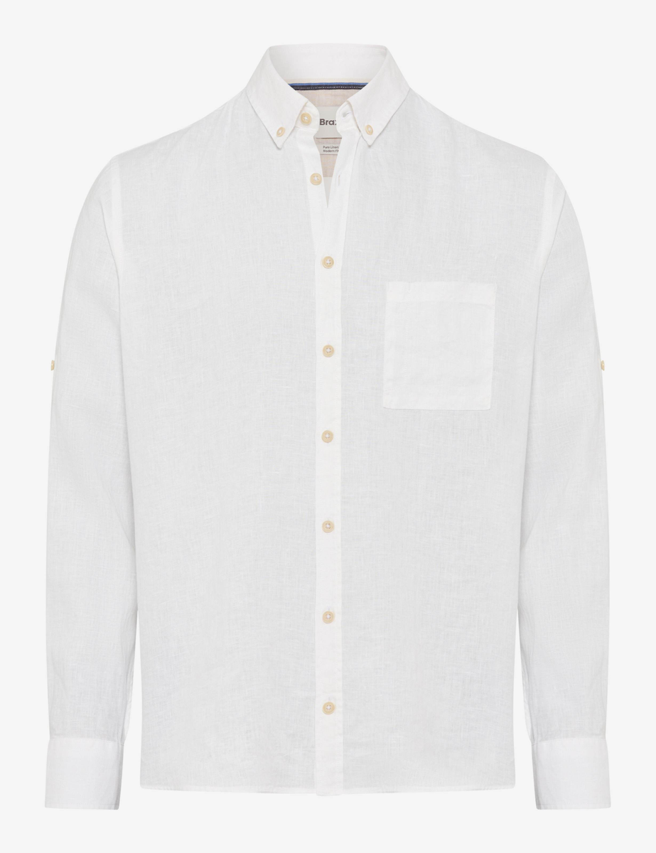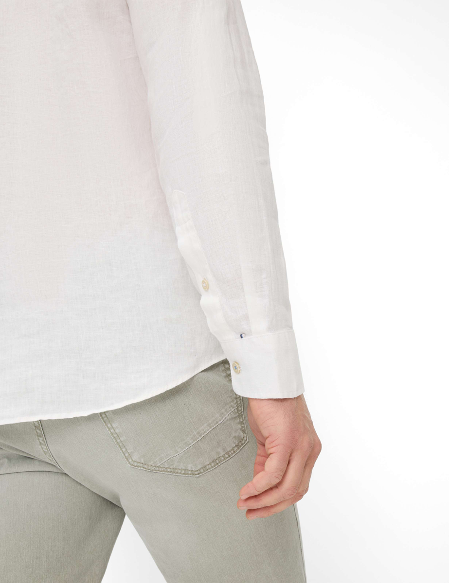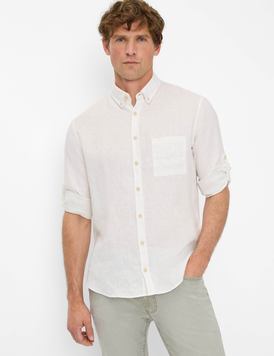 Eine stilvolle Wahl für warme Tage – das Herrenhemd im Style DIRK verbindet klassische Elemente mit einem modernen Look. Die leicht taillierte Silhouette, der sportive Button-Down-Kragen und eine aufgesetzte Brusttasche verleihen dem Langarmhemd eine smarte Lässigkeit. Sein minimalistischer Stil lebt von der feinen Struktur des Stoffes, die dem unifarbenen Hemd eine dezente, edle Tiefe verleiht. Mit seiner cleanen Optik empfiehlt sich das Leinenhemd als vielseitiges Essential, das sich mühelos mit Chinos oder leichten Five-Pocket-Jeans kombinieren lässt. Seine sommerliche Leichtigkeit verdankt das Hemd dem Material. Reines Leinen überzeugt mit natürlicher Atmungsaktivität, angenehmer Haptik und kühlendem Tragekomfort.