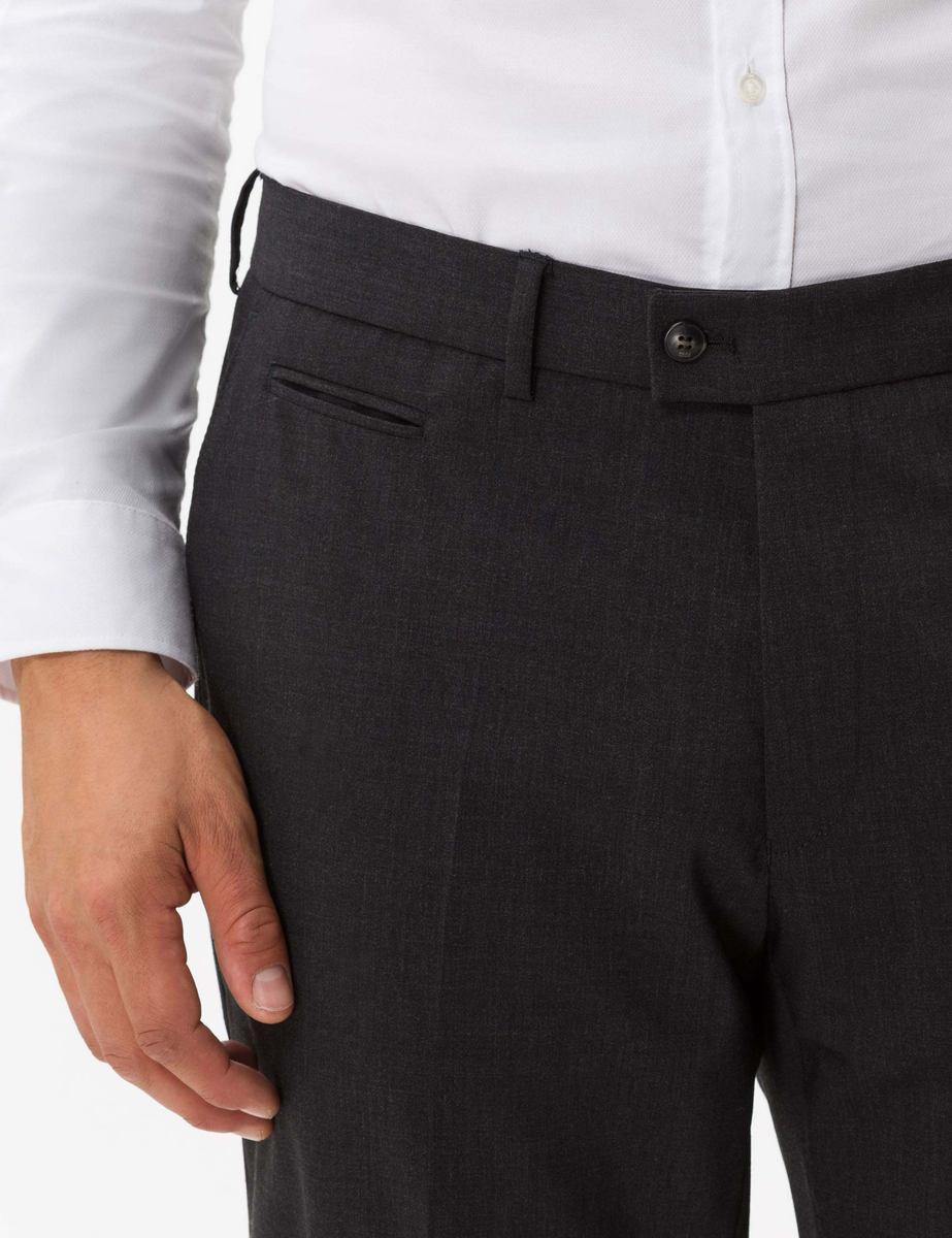 Manager. Diese exzellente Wollqualität verspricht eine Tuchhose in edler Optik und mit besten Eigenschaften. Die feine Wollmischung erhält dank des Lycra-Stretchs eine Top-Performance im Trageverhalten und zeigt sich in einem glatten Warenbild. Bereichert wird diese elegante Wollhose im Style ENRICO nur noch durch ihre Pflegeleichtigkeit. Aufgrund des hochwertigen Materialmix aus Schurwolle mit Polyester ist diese Herrenhose aus einer leichten, waschbaren Qualität gefertigt, die den Ansprüchen an eine gepflegte Optik und einer einfachen Reinigung gerecht wird. Durch die Chinoform präsentiert sich die Wollhose in einem zeitgemäßen Stil, der mit wertigen Ausstattungdetails angereichert ist. Damit empfiehlt sich diese Hose als optimale Businesshose.