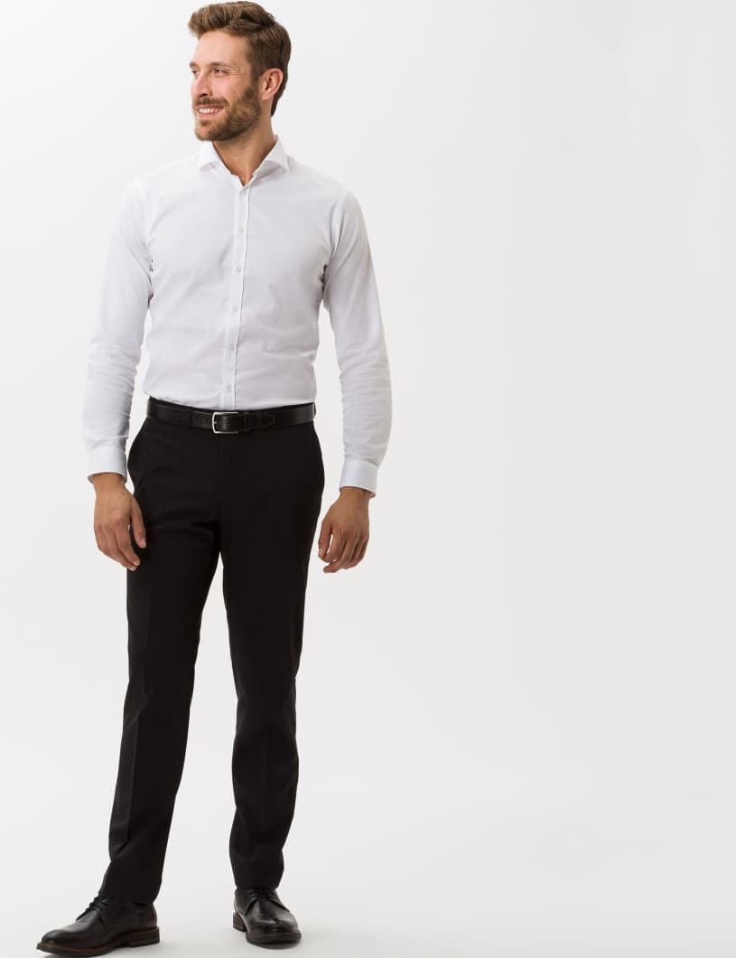 Manager. Diese exzellente Wollqualität verspricht eine Tuchhose in edler Optik und mit besten Eigenschaften. Die feine Wollmischung erhält dank des Lycra-Stretchs eine Top-Performance im Trageverhalten und zeigt sich in einem glatten Warenbild. Bereichert wird diese elegante Wollhose im Style ENRICO nur noch durch ihre Pflegeleichtigkeit. Aufgrund des hochwertigen Materialmix aus Schurwolle mit Polyester ist diese Herrenhose aus einer leichten, waschbaren Qualität gefertigt, die den Ansprüchen an eine gepflegte Optik und einer einfachen Reinigung gerecht wird. Durch die Chinoform präsentiert sich die Wollhose in einem zeitgemäßen Stil, der mit wertigen Ausstattungdetails angereichert ist. Damit empfiehlt sich diese Hose als optimale Businesshose.