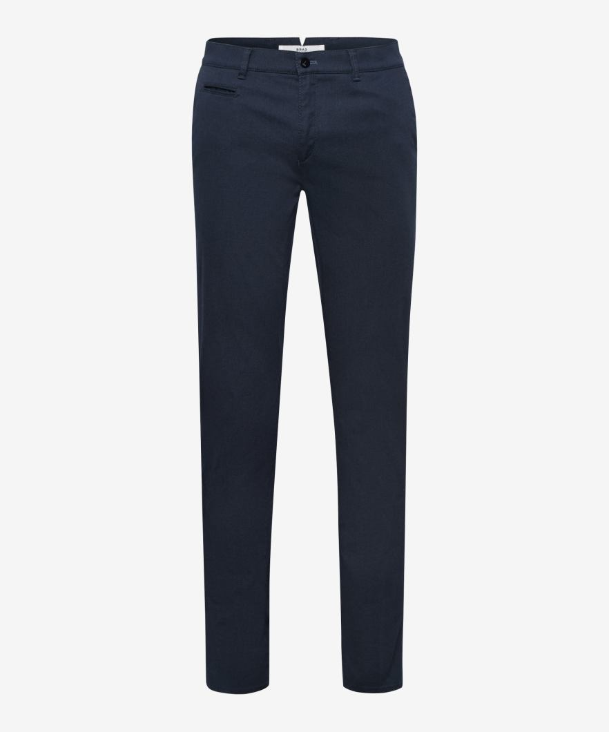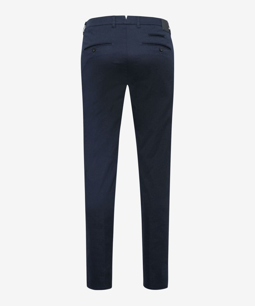 Die Herrenhose Style Fabio In ist ein Trend-Item. Die Flatfronthose steht in Kombination mit Sneakern oder Slippern für ein smartes und modebewusstes Erscheinungsbild. Die Modern Fit Herrenhose ist modisch und vielseitig mit schlanker Passform und regulärer Leibhöhe. Eine sportive Optik erhält die Hose insbesondere durch das aufwendige Taschendesign. Zusätzlich ist sie mit Kunstlederbesatz und Ziernieten gearbeitet. Movement without limits: Die extrem elastischen Hi-Flex-Fasern garantieren Ihnen durch High Stretch unendliche Bewegungsfreiheit - exclusive by BRAX. Selbstbewusst und spannend ist darüber hinaus die Struktur, die mit ihrem effektvollen Warenbild das Material belebt. Der nachhaltige, unempfindliche und hautsympathische Baumwollmix bietet außerdem bei dieser Chino ein erstklassiges Tragegefühl.Form: