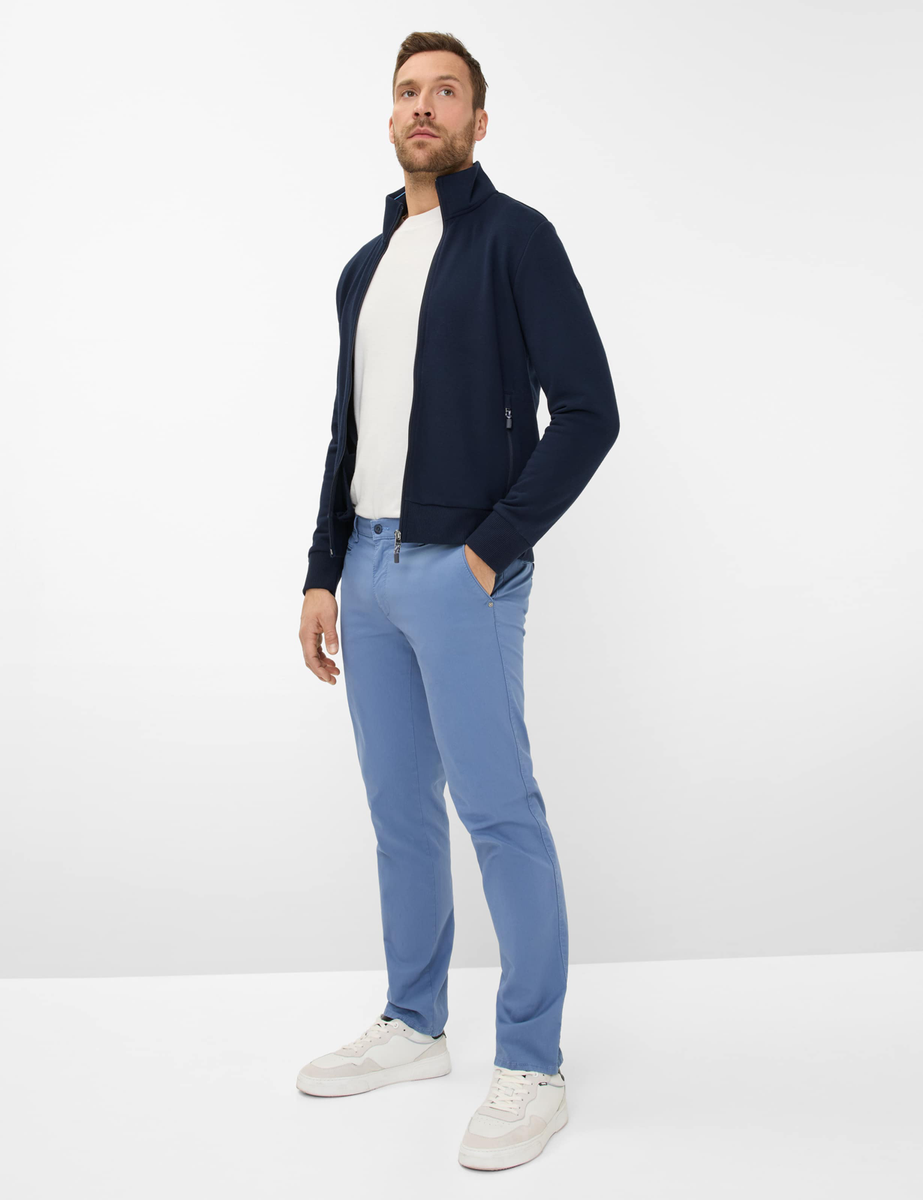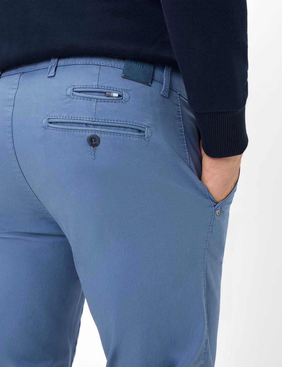 Für Herren ist der Style FABIO IN ein Trend-Item. Smart mit Hemd oder modern mit Poloshirt - die Chino gefällt im klassischen und legeren Look. Die Modern Fit Herrenhose ist modisch und vielseitig mit schlanker Passform und regulärer Leibhöhe. Eine typische Optik erhält die Hose insbesondere durch die französischen Taschen. Zusätzlich ist sie mit Kunstlederbesatz und Ziernieten gearbeitet. Movement without limits: Die extrem elastischen Hi-Flex-Fasern garantieren Ihnen durch High Stretch unendliche Bewegungsfreiheit - exclusive by BRAX. Selbstbewusst und spannend ist darüber hinaus die Struktur, die mit ihrem effektvollen Warenbild das Material belebt. Der unempfindliche und hautfreundliche Baumwollmix bietet zudem bei dieser Chino ein einwandfreies Tragegefühl.