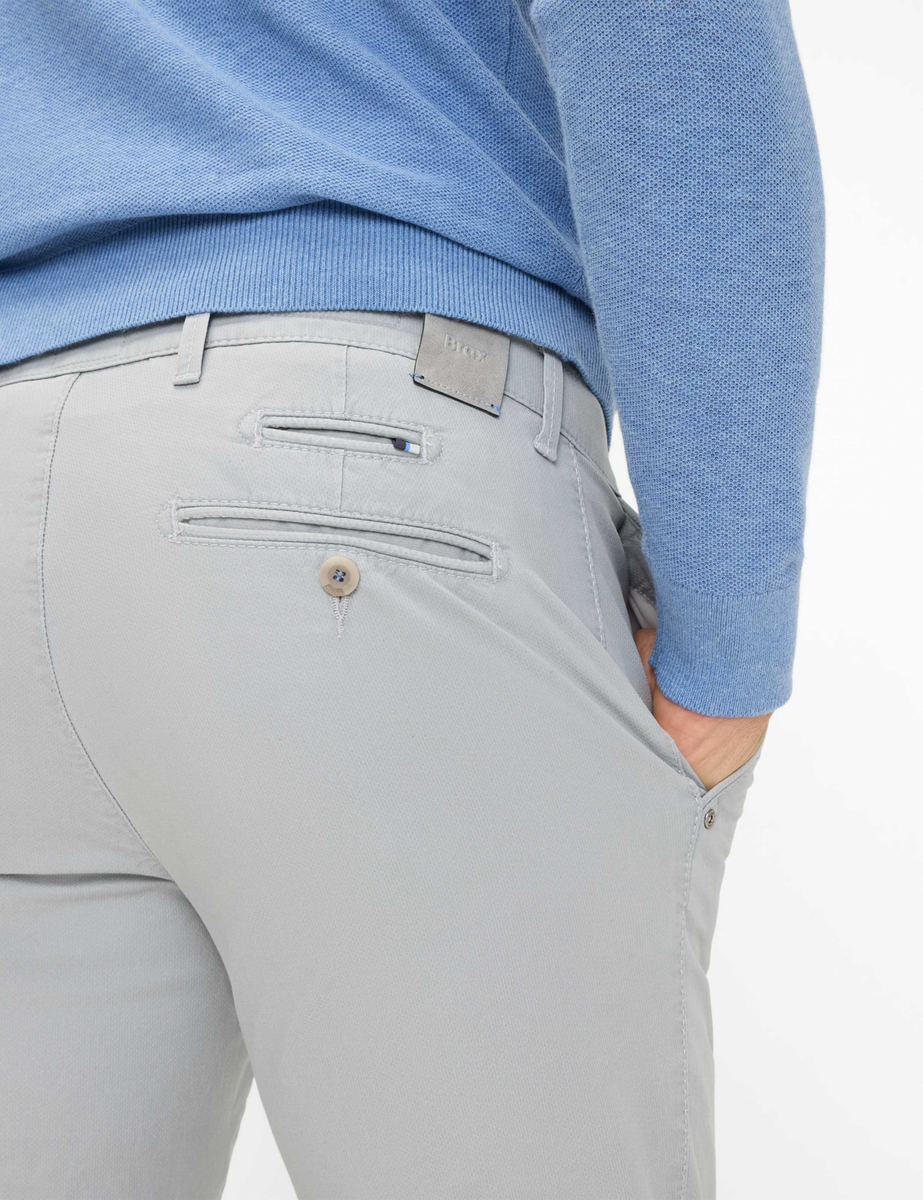 Für Herren ist der Style FABIO IN ein Trend-Item. Smart mit Hemd oder modern mit Poloshirt - die Chino gefällt im klassischen und legeren Look. Die Modern Fit Herrenhose ist modisch und vielseitig mit schlanker Passform und regulärer Leibhöhe. Eine typische Optik erhält die Hose insbesondere durch die französischen Taschen. Zusätzlich ist sie mit Kunstlederbesatz und Ziernieten gearbeitet. Movement without limits: Die extrem elastischen Hi-Flex-Fasern garantieren Ihnen durch High Stretch unendliche Bewegungsfreiheit - exclusive by BRAX. Selbstbewusst und spannend ist darüber hinaus die Struktur, die mit ihrem effektvollen Warenbild das Material belebt. Der unempfindliche und hautfreundliche Baumwollmix bietet zudem bei dieser Chino ein einwandfreies Tragegefühl.