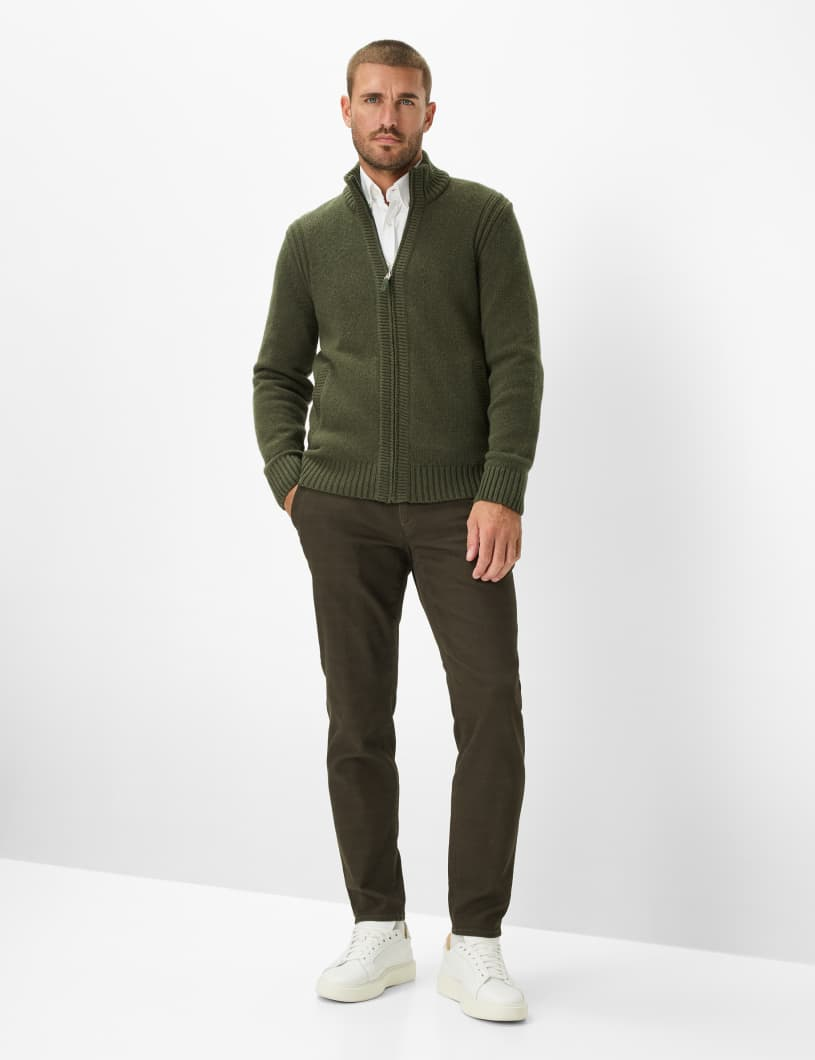 Die Strickjacke im STYLE JAKE ist das Must-have für die kalte Jahreszeit und verbindet stilvolle Maskulinität mit funktionalem Design. Mit ihrem geradlinigen Schnitt und dem modischen Stehkragen präsentiert sie sich als zeitloser Klassiker, der Ihrem Outfit eine elegante Note verleiht. Der hochwertige Reißverschluss fügt einen modernen Akzent hinzu und die unauffälligen Einschubtaschen sind praktisch und stilvoll integriert. Gefertigt aus einem luxuriösen Mix aus weicher Wolle, geschmeidiger Viskose und robustem Polyamid, bietet diese Jacke eine perfekte Kombination aus natürlicher Wärme, angenehmem Tragegefühl und langlebiger Formstabilität. Der exklusive Soft Wool-Charakter sorgt für eine besonders angenehme Haptik, die höchsten Komfort verspricht. Diese Strickjacke ist die ideale Wahl für Herren, die Wert auf eine harmonische Verbindung von Komfort und Stil legen.