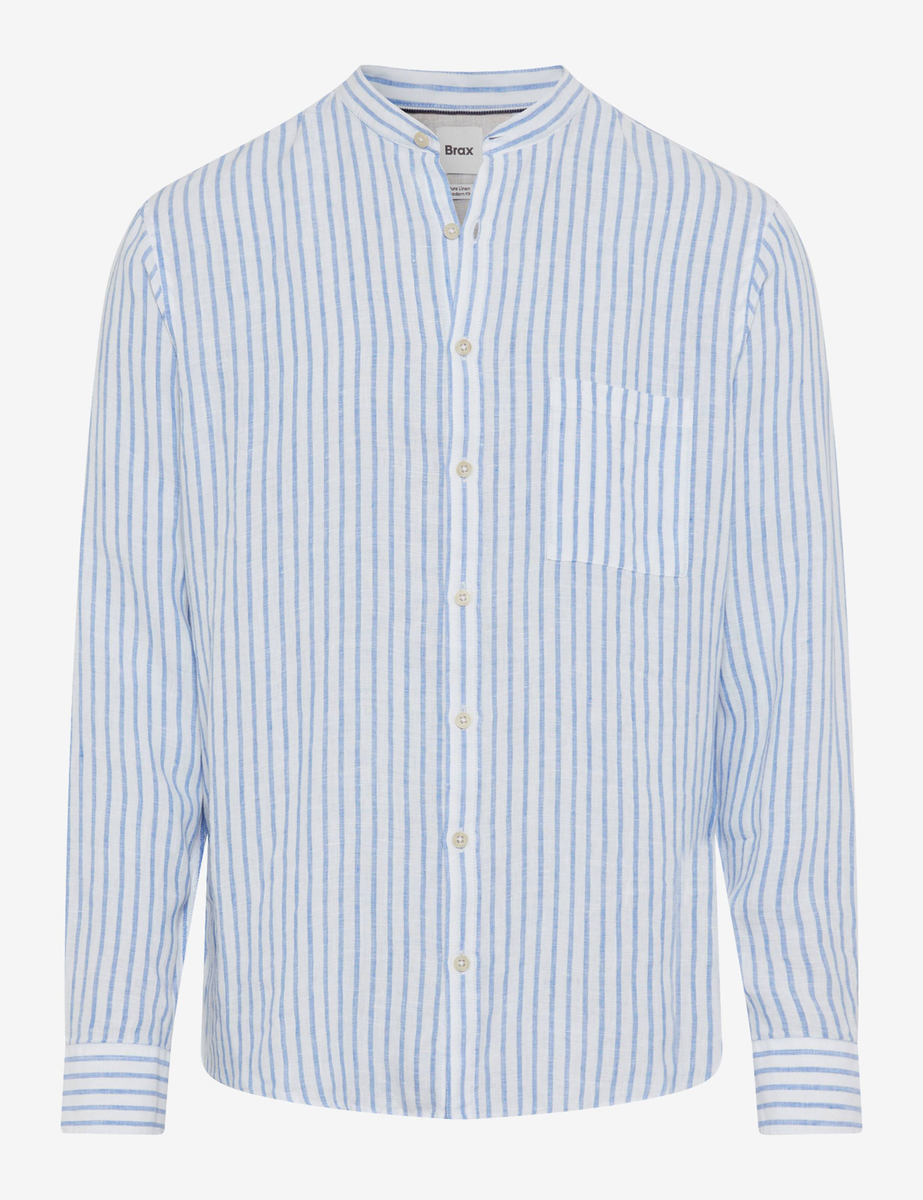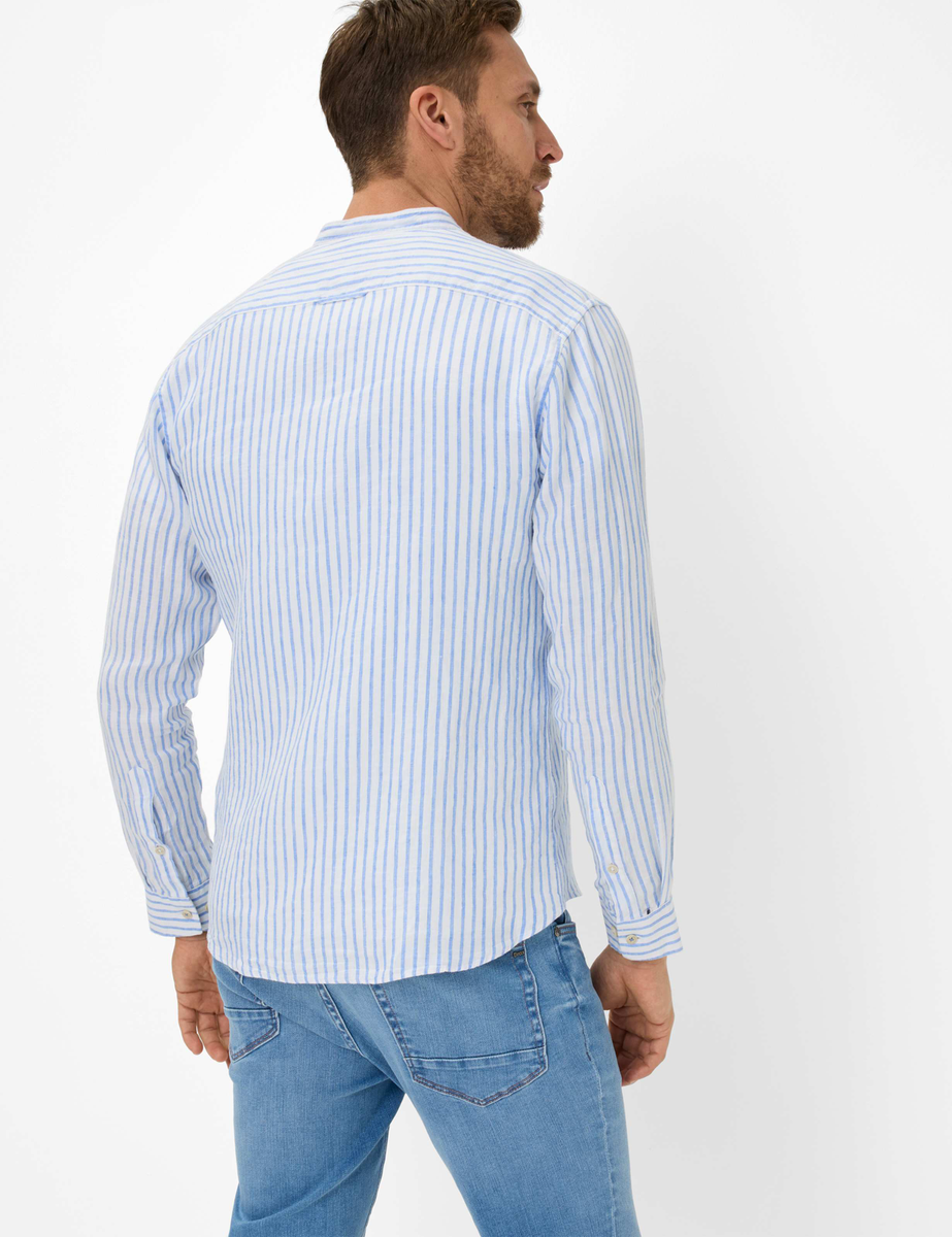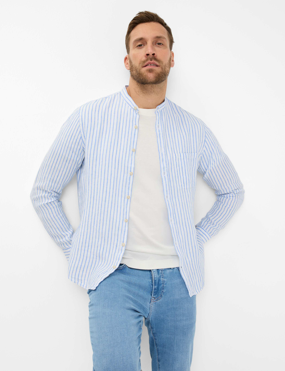 Das luftige Herrenhemd im Style LARS vereint entspannten Stil mit smarter Ausstrahlung. Die leicht taillierte Silhouette sorgt für eine zeitgemäße Passform, während der Stehkragen dem Hemd eine reduzierte Note verleiht. Eine aufgesetzte Brusttasche ergänzt den Look funktional und unterstreicht die entspannte Optik des Leinenhemdes. Im Fokus stehen aber die Längsstreifen. Sie bringen Struktur ins Design und lassen das Langarmhemd gleichzeitig klassisch und leger wirken. So harmoniert das Hemd mühelos mit Chinos oder leichten Five-Pocket-Jeans. Auch das Material unterstützt den sommerlichen Charakter. Reines Leinen ist atmungsaktiv, angenehm leicht und bietet ein natürliches Tragegefühl – perfekt für warme Tage.
