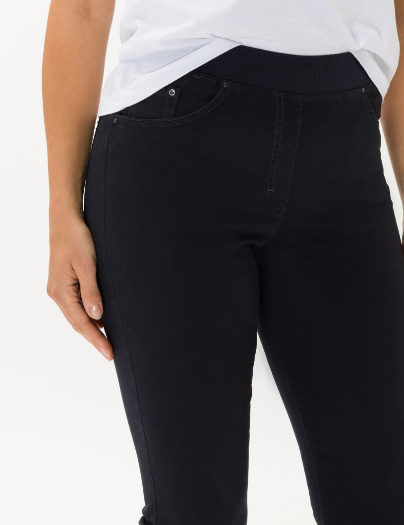 Der Style PAMINA von Raphaela ist ein Lieblingsstück für Damen. Vielseitig und zugleich bequem sorgt diese Schlupfhose für einen smarten Look. Die Slim Fit Damenhose mit hoher Taille ist schlank geschnitten und sitzt figurschmeichelnd am Bein. Unkompliziert ergänzt mit formschönem Jerseybund - einfach reinschlüpfen und gut aussehen. Durch die aufgesetzten Gesäßtaschen erhält die Hose eine sportliche Note. Zusätzlich ist sie mit dekorativen Swarovski-Elementen verziert. Für luxuriösen Glanz mit softer Haptik steht Satin. Die Atlasbindung kennzeichnet das charakteristische Gewebe. Bei dieser Schlupfhose bietet der unempfindliche und hautsympathische Baumwollmix zudem ein vorzügliches Tragegefühl.