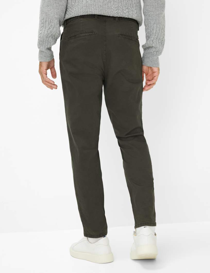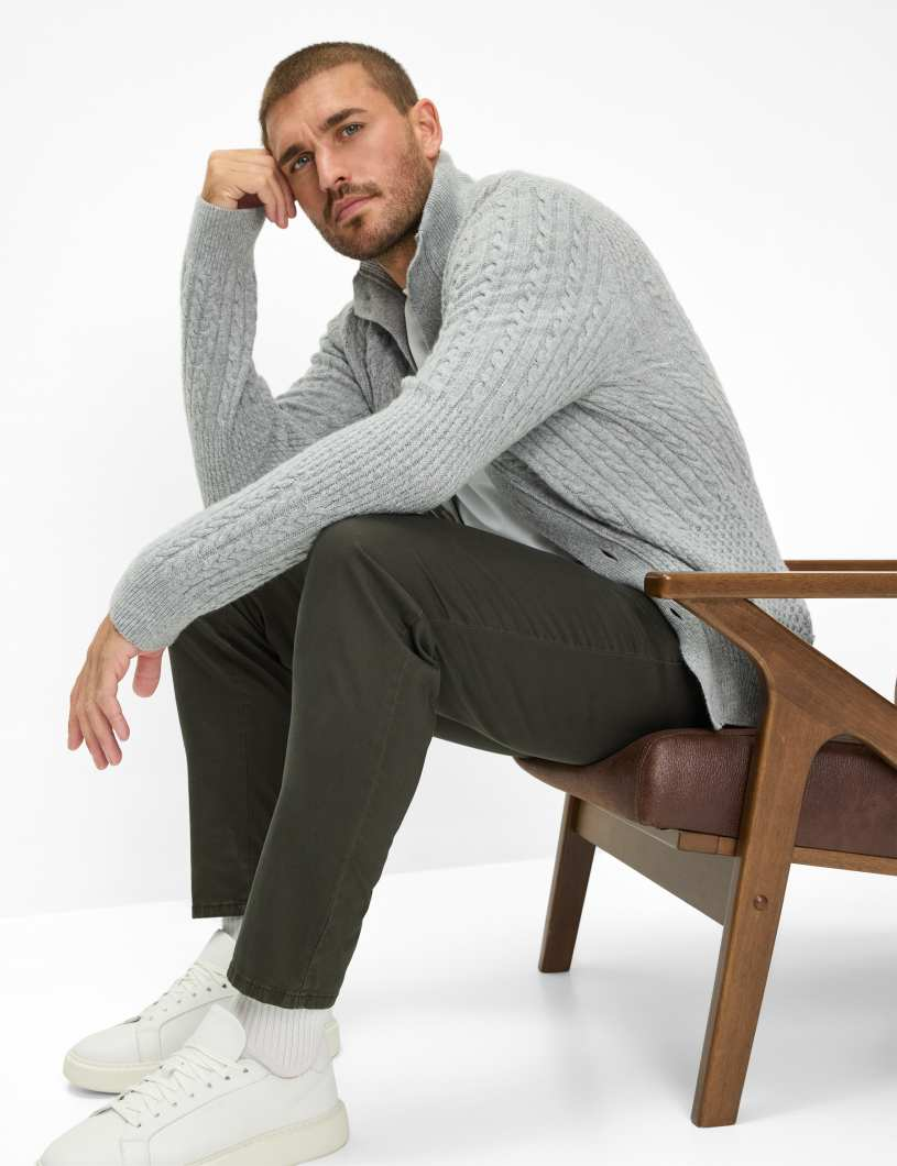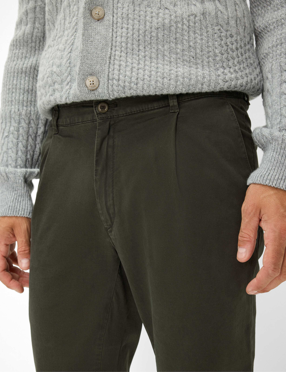 Mit ihrem lässig-trendigen Charakter bereichert die Chino im Style TINO Ihren smarten Herbstlook. Die schlanke Silhouette und der Tapered Fit mit normaler Leibhöhe stehen für eine zeitgemäße Passform, die dank der verkürzten Schrittlänge besonders modisch wirkt. Zeitgemäße Details wie die modische Bundfalte und dezente Ziernieten geben der Hose einen individuellen Touch. Klassisch dagegen präsentieren sich die typischen Leistengesäßtaschen und die französischen Taschen. Neben dem angesagten Design überzeugt die Herrenhose auch durch ihre Materialwahl. Durch die leicht strukturierte Triple Stone-Qualität erhält die Chinohose eine kernige Optik mit angenehmer Haptik. Die verarbeitete Baumwollmischung mit Lyocell und Elasthan überzeugt mit einem ausbalancierten Tragegefühl, hoher Formstabilität und leichtem Stretchkomfort. Ein Must-have, das Mode und Alltagstauglichkeit mit vereint.