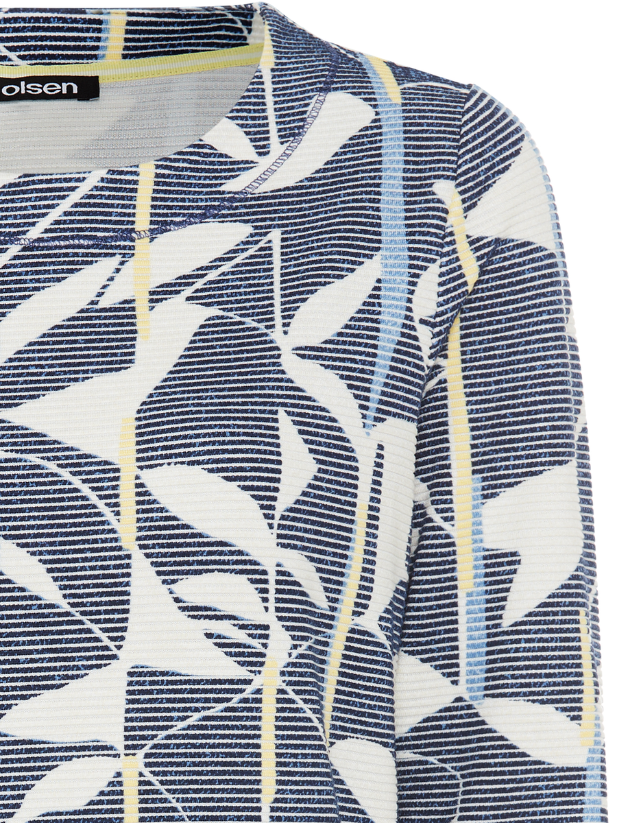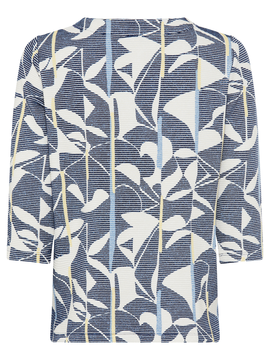 Dieses T-Shirt begeistert mit einem vollflächigen Allover-Print, der jedem Look eine besondere Note verleiht. Der Rundhalsausschnitt, die 3/4-Ärmel und der gerade Schnitt sorgen für eine klassische und bequeme Passform. Gefertigt aus Polyester, Viskose und Elastan, bietet es ein leichtes, angenehmes Tragegefühl. Länge: 60 cm.